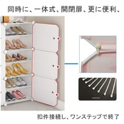 【サイドオープンドア設計】デザインチームの話し合いの結果、一体型のサイドドアを採用し、靴を探す際の手伝いをする必要がなくなりました。すべてのドアパネルをつなげるだけで実現できます。クリームホワイトのドアパネルには可愛いステッカーも付いており、家の素敵なインテリアアイテムにもなります。お客様用としてもぴったりです。