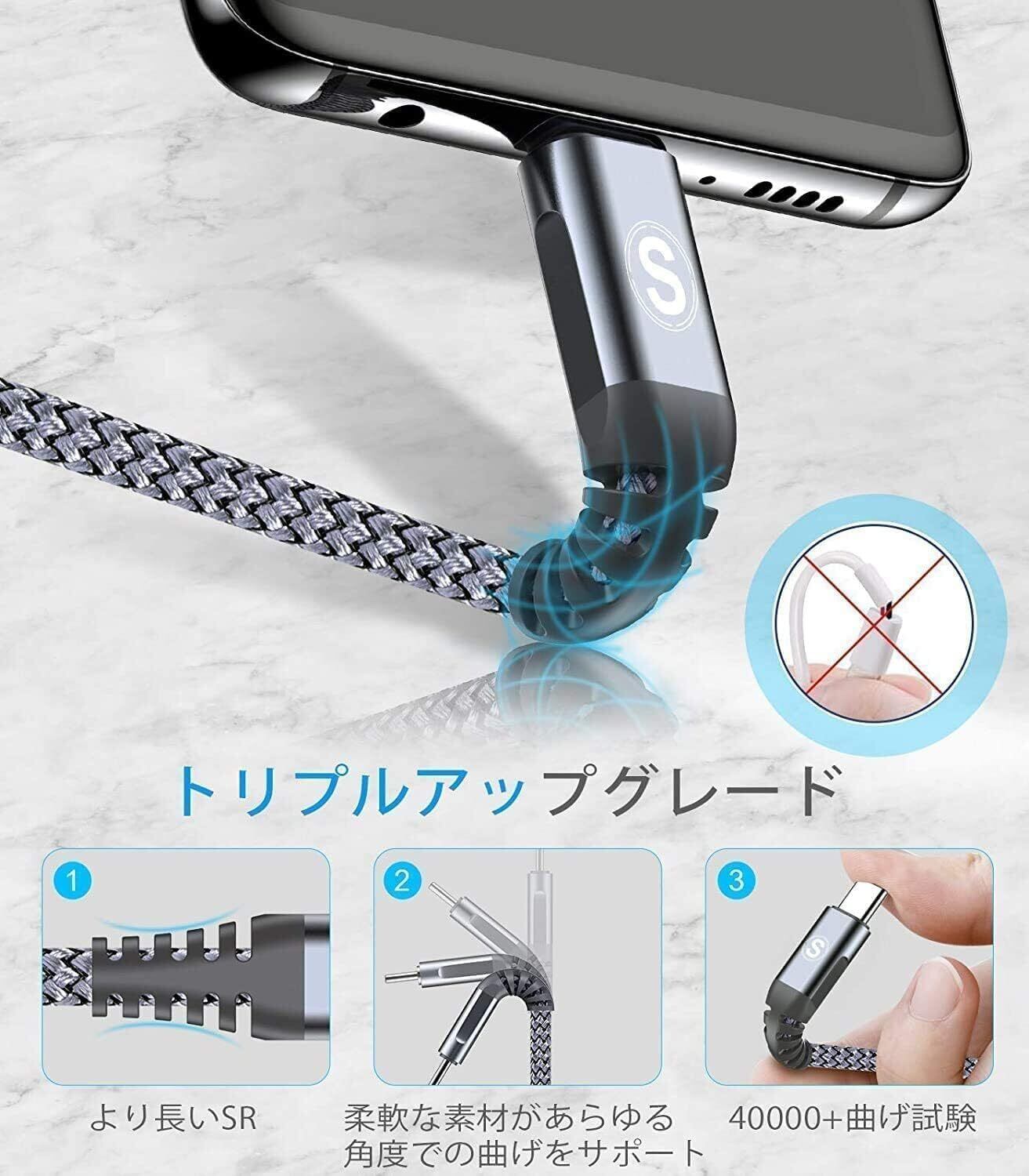 【驚きさの耐久性】:ナイロンファイバー被覆構造で40000回以上の曲げ試験に合格し、一般的なUSBケーブルより寿命を4倍以上に向上する高耐久Type C ケーブル 充電ケーブルです。しかも接続口に金メッキ加工されて、時間の使用による信号劣化など心配する必要がなくて、耐食性、耐久性に優れています。