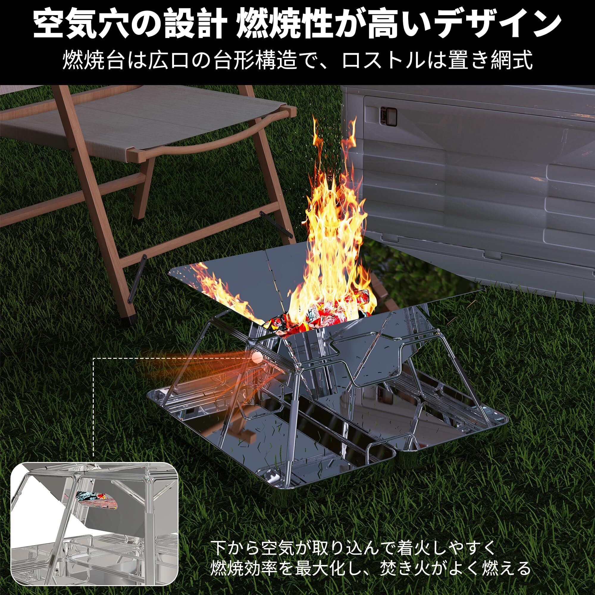 【2022最新】AMITSUNTOP 焚き火台 バーベキュー コンロ 屋外での焚き火 コンパクトな折りたたみ収納ステンレス鋼 収納袋付き グリルデザインの改良により 安定性と利便性が向上