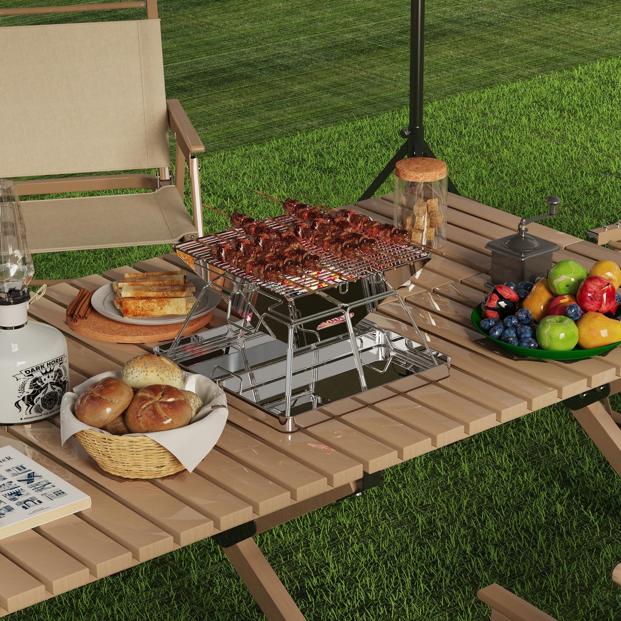 【材質】暖炉と収納ボックスは410ステンレス鋼製、ストーブサポートブラケットは反射性とスタイルに優れたクロムメッキ鋼製。バーベキューの網は 304 食品等級のステンレス鋼から成っています
