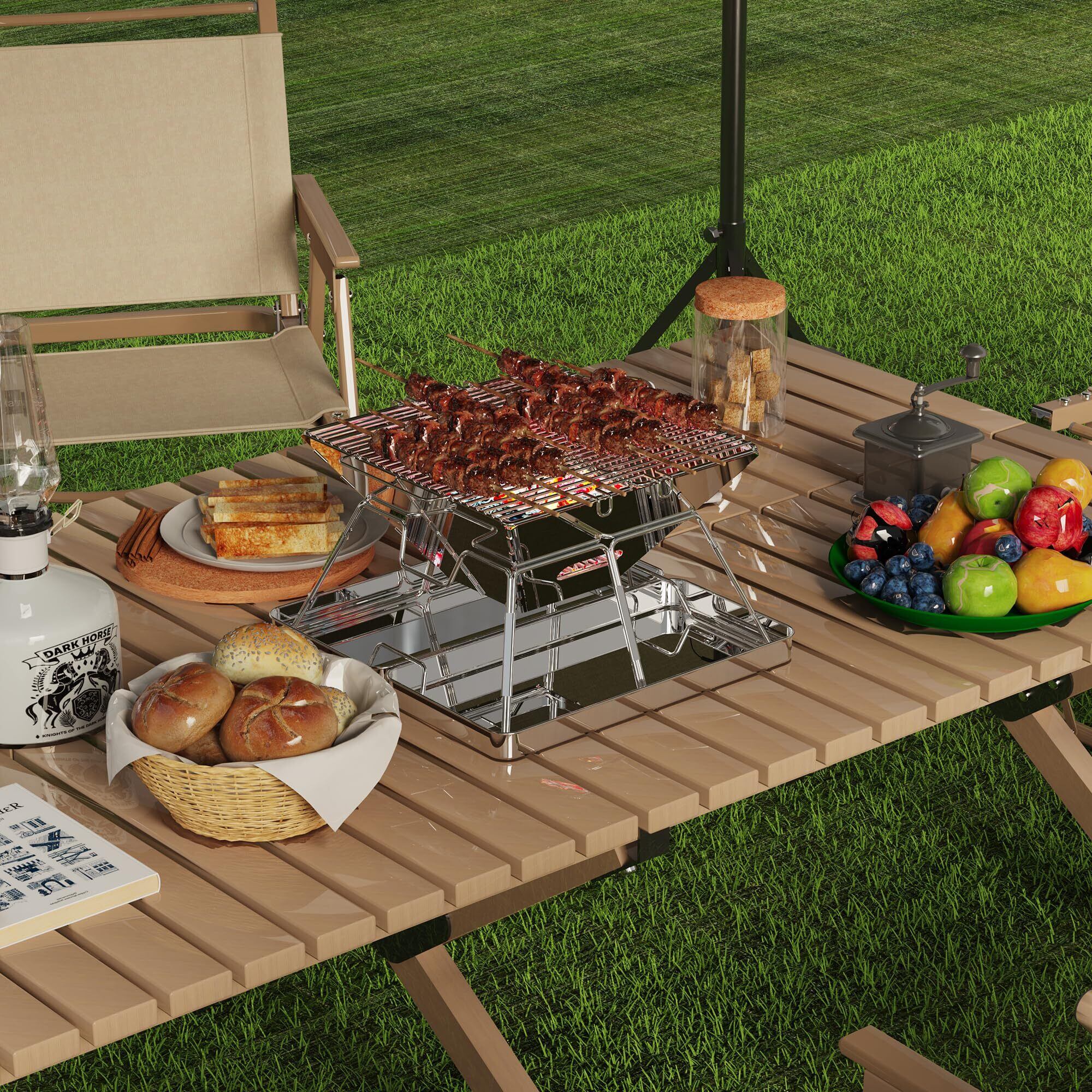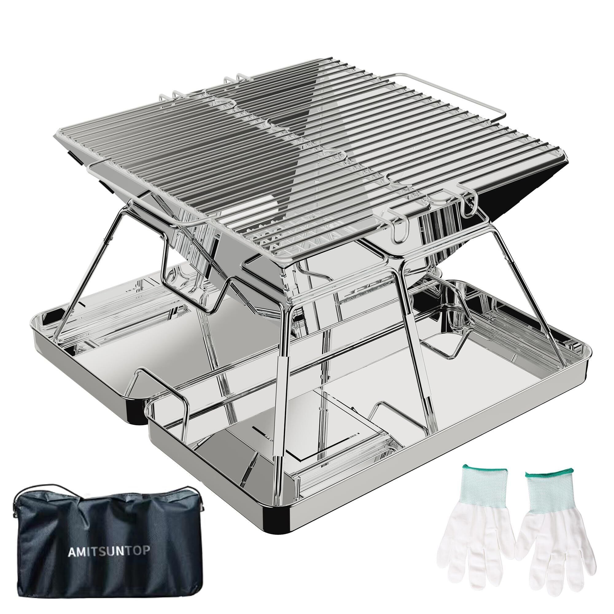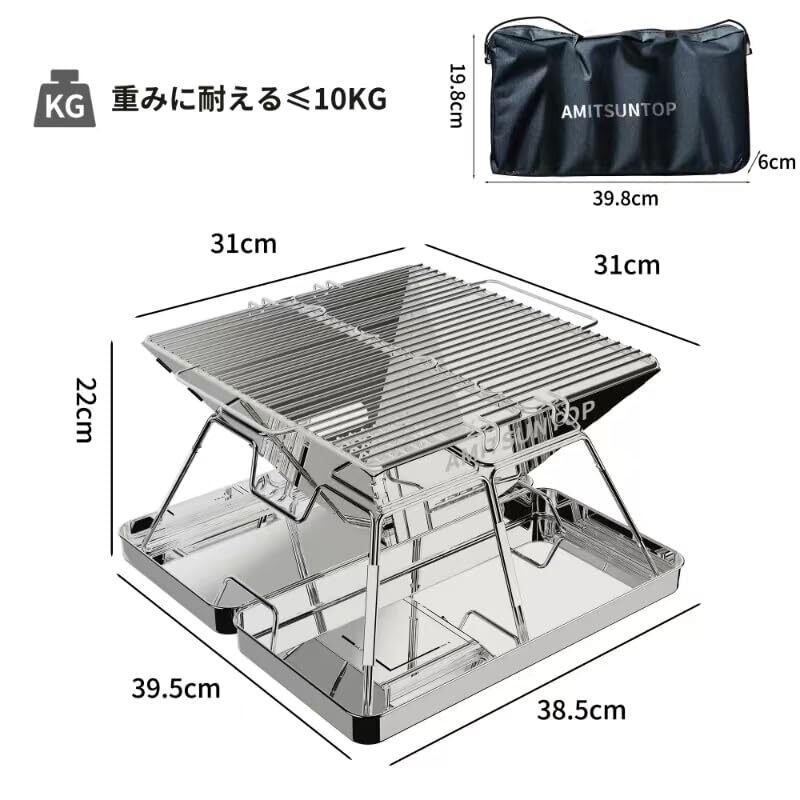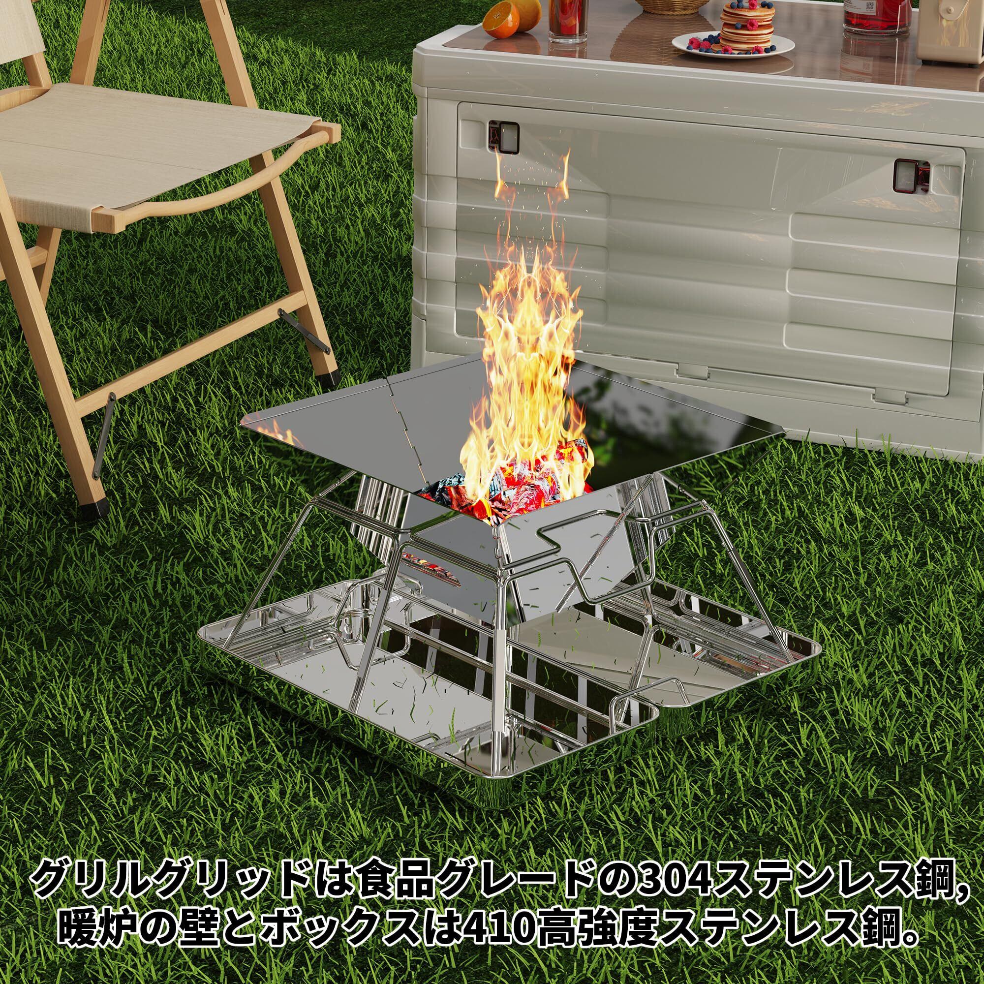 AMITSUNTOP 焚き火台 バーベキュー コンロ 屋外での焚き火 コンパクトな折りたたみ収納ステンレス鋼 収納袋付き グリルデザインの改良により 安定性と利便性が向上