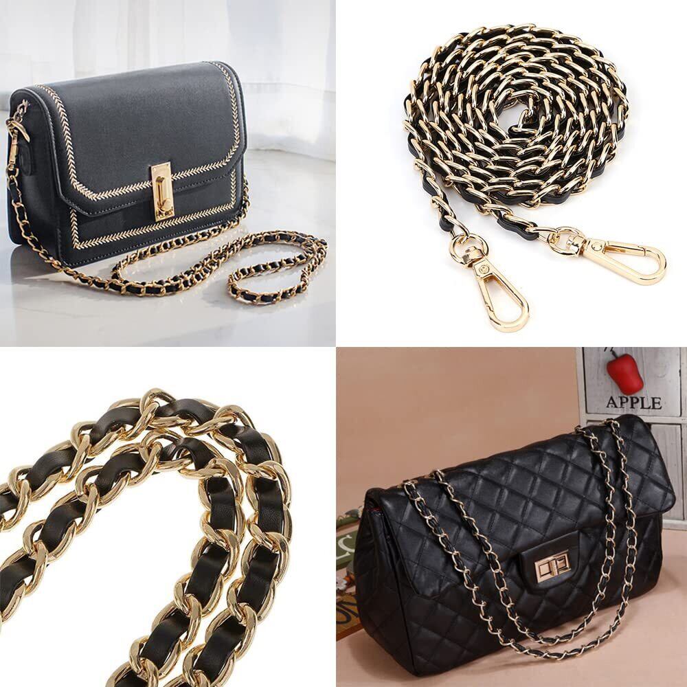 [DFsucces] チェーン ストラップ ショルダー ハンドバッグ 付け替え 交換用 アクセサリーパーツ 120cm長さ (1本入り-黑ゴールド)