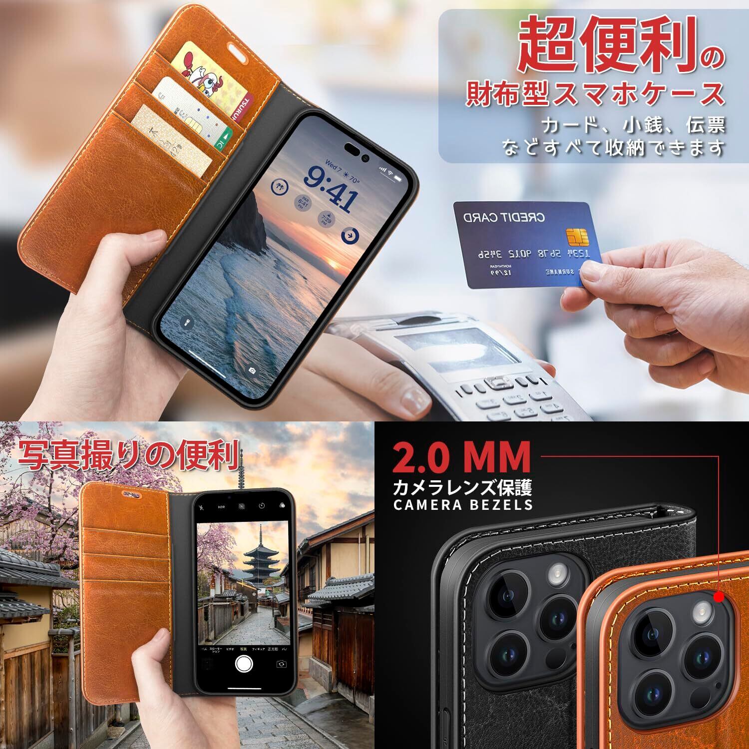 【便利な使用さ】:カードスロットあり、通常に使うカードを十分入れます、サイドポケットも設計しておりお金や鍵を入れられ、財布を忘れで外出しても安心です。ご注意:使用者のカードの磁性に影響を与えないために、この商品のフリップでマグネットを入れておりません。ご購入前に予めご了承ください、でもフリップが十分の重量と厚みがありますので、マグネット無しでもフラフラになりません。