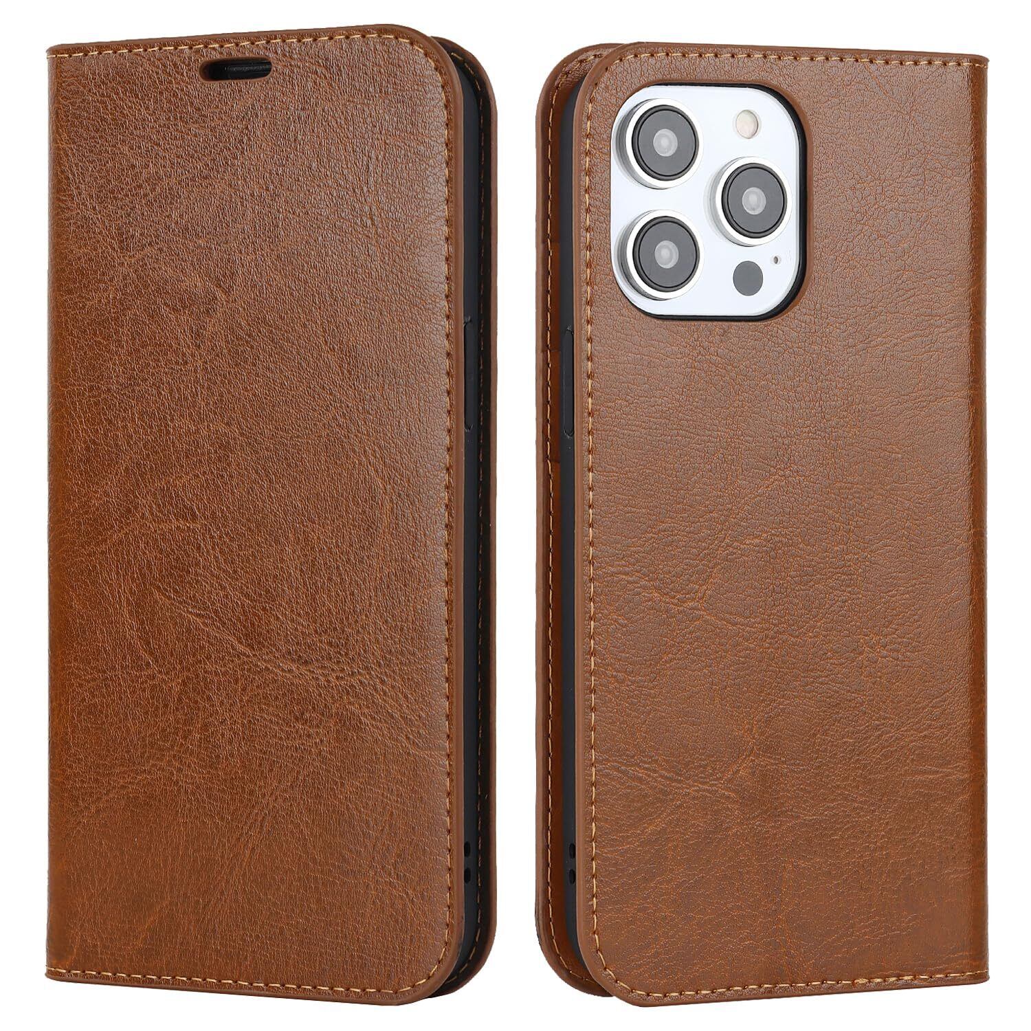 SKIASE iPhone 14 Pro ケース 手帳型 本革 高級レザー マグネット無し アイフォン14プロ 携帯 カバー 財布型 横置きスタンド機能 カード入れ カード収納 耐衝撃 全面保護 軽量 薄型 落ち着いた色 ライトブラウン