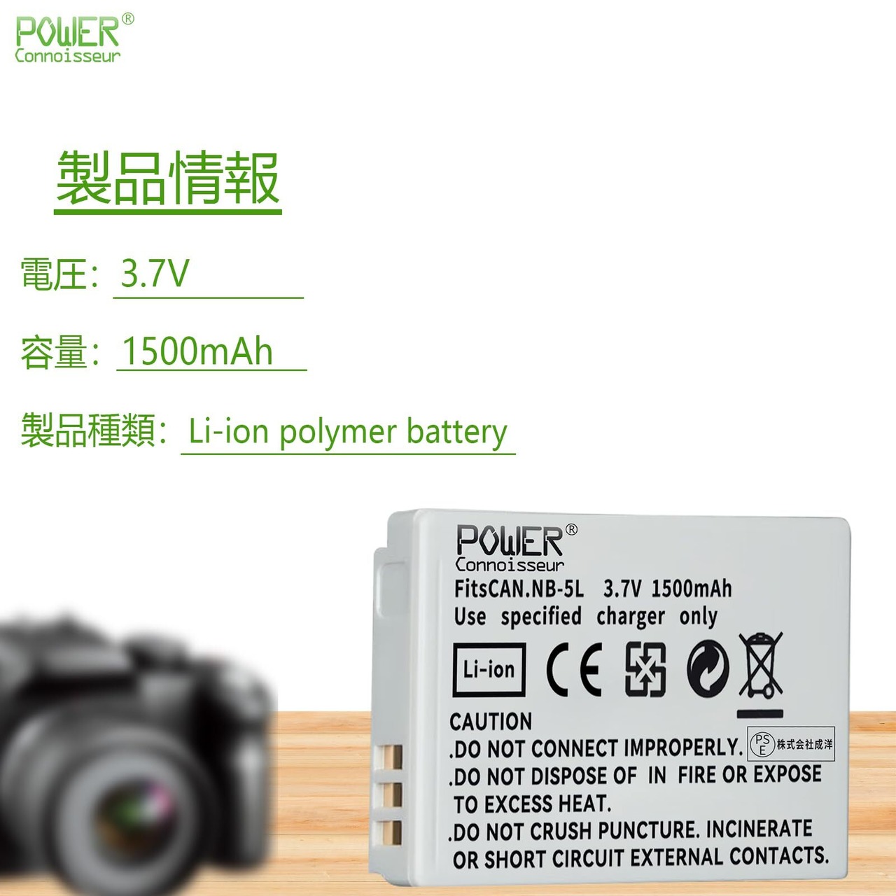 「Power-connoisseur」NB-5L 3.7V 1500mAh 交換バッテリー+互換NB-5L USB 充電器 セット Canon NB-5L カメラ 対応