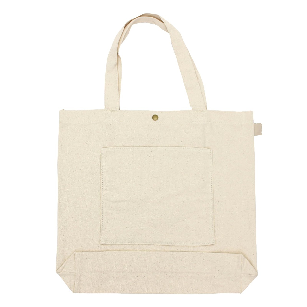 軽くて丈夫な綿の帆布生地。背面はポケット仕様です。お買い物やお出かけ・ご旅行などに最適!小脇に抱えられるスリムタイプなので通勤通学用にもおすすめ。A4サイズが入ります。