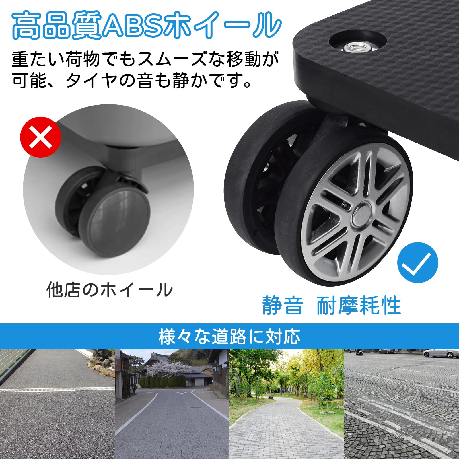 【360 ° 回転することができます】私たちの多目的ショッピングカートには、5つの工業用 pp 回転ホイールが装備されています,荷物を満載していてもスムーズに移動できます。360 ° 回転可能な前輪は、方向を簡単に変えることができ、平らな表面や亀裂でカートを滑りやすくします。