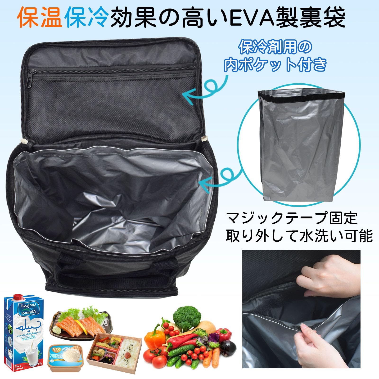 【高品質素材&耐久性】表面素材は防水コーティングが施されたオックスフォード生地なので、雨、雪、の日でも中の商品が湿る心配はありません。インナーライナーはアップグレード素材のEVAを使用し、防水性能に優れた厚手のライナーです。 ショッピングバッグには、食品の鮮度保持期間を延長する保温・保冷機能がある。家族の頼もしい助っ人です。