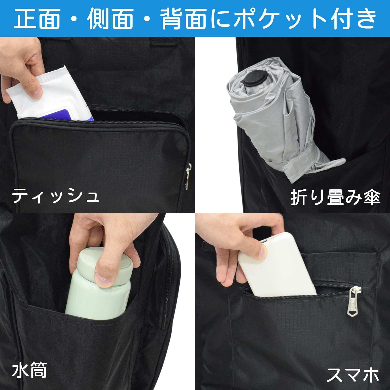 【45リットル大容量】この折りたたみカートは45リットルの大容量で、広い容量と分類設計により、さまざまな食べ物、日用品、その他のものを整然と保管することができます。乱雑をなくし、空間を有効活用する。ショッピングバッグサイズ:縦35cm*横21.5cm*高さ50cm、4つのポケットも含まれており、傘、鍵、携帯電話、財布など多くのものを入れることができ、買い物をするときに個人のものをいつでも保護することができます。
