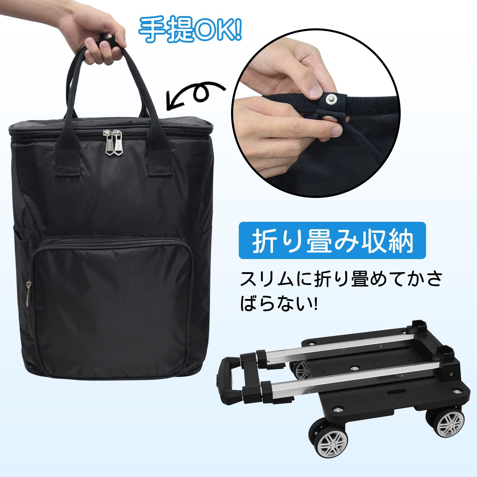 特徴 防錆/高さ調節可能/伸縮ハンドル/折りたたみ式