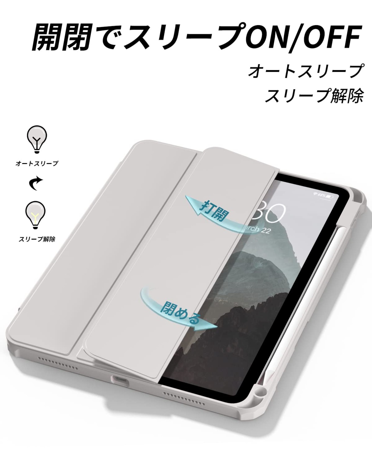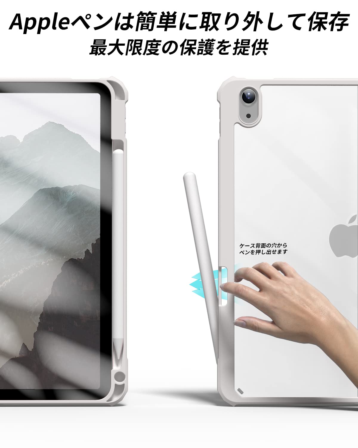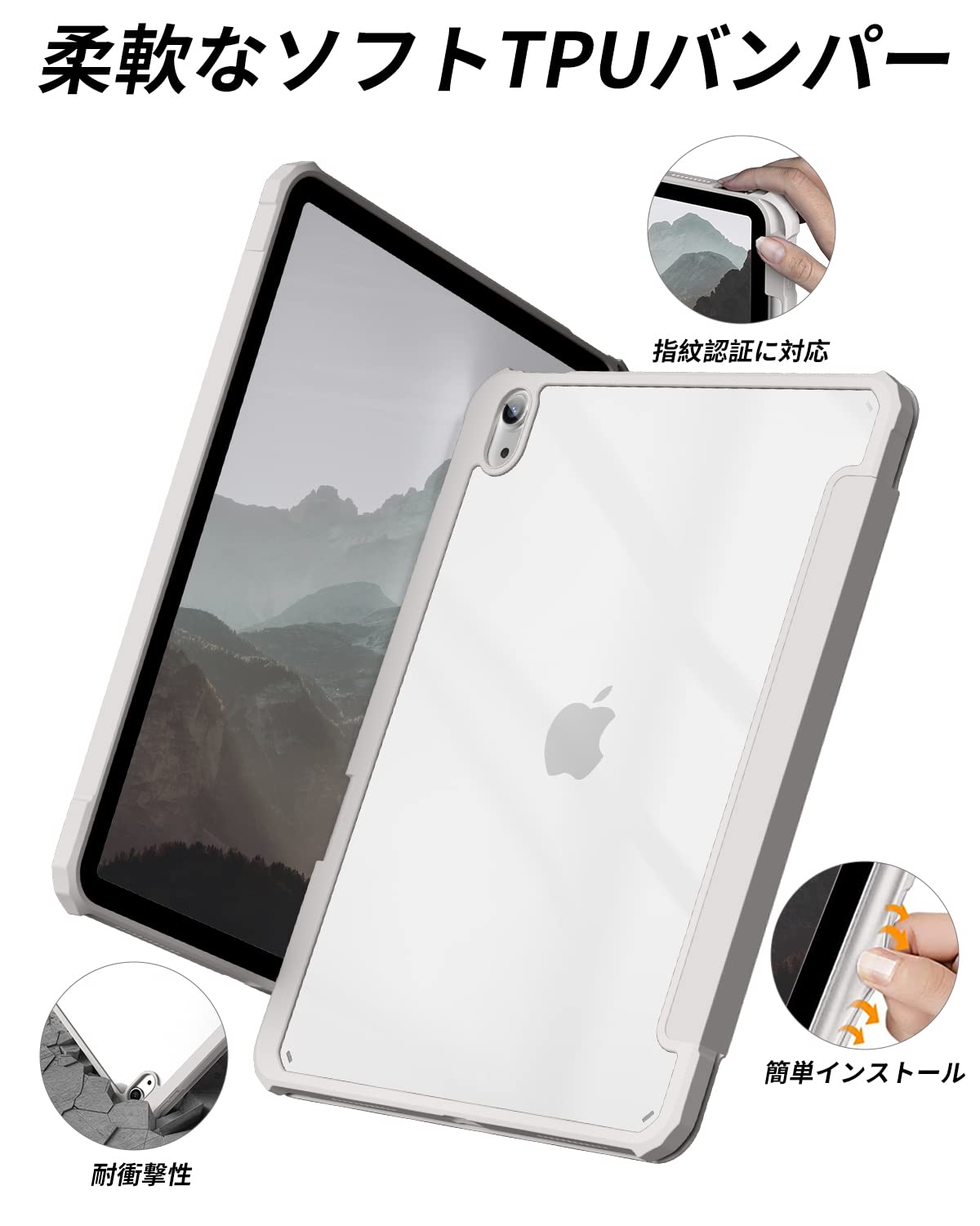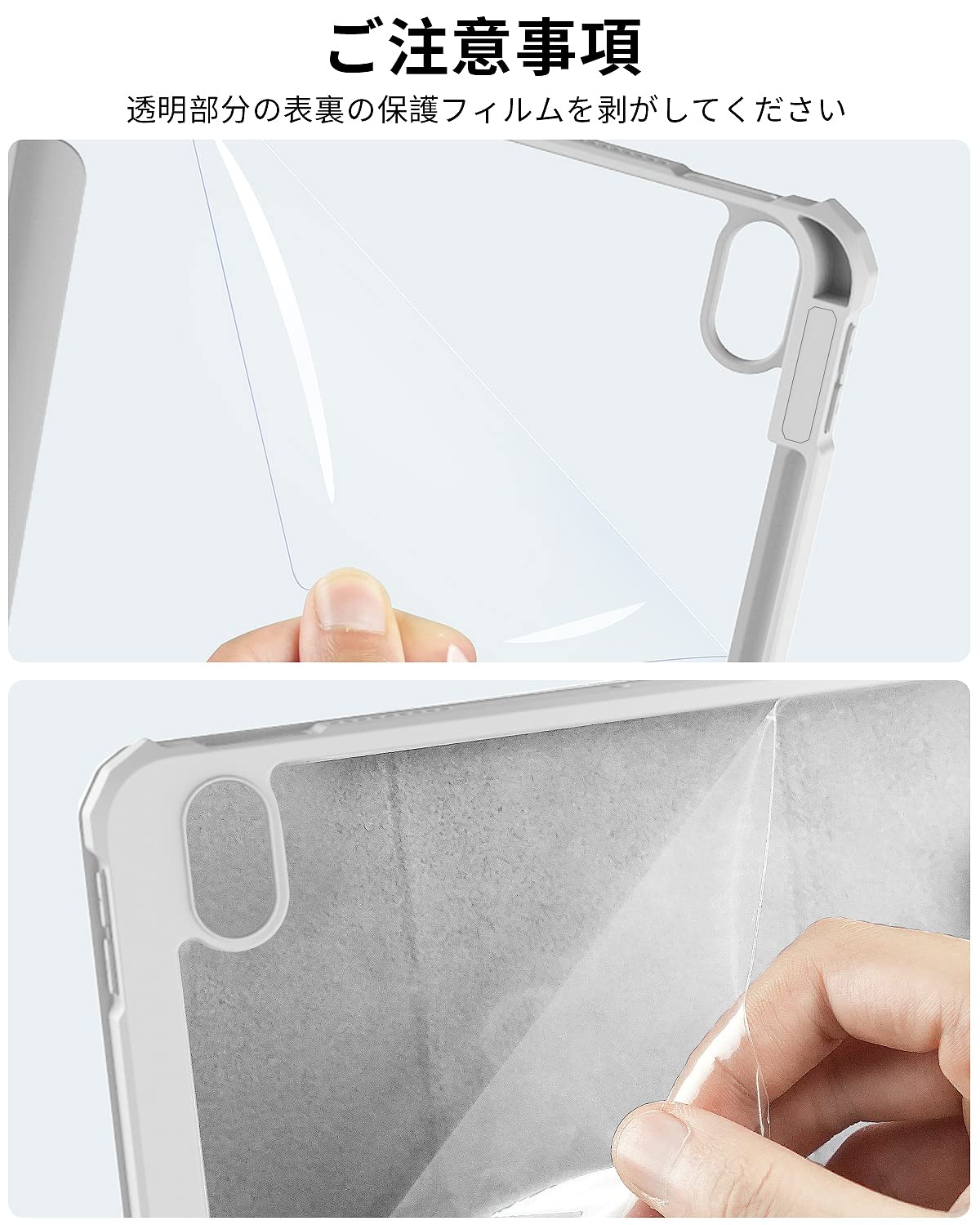 【材料・透明バックカバー】 ケースの表面はPUレザー素材を利用して、軽量、超薄を備えます。ポリカーボネート素材を採用している透明バックカバーは汚れや傷つけなどを防止するだけでなく、iPad本体の色と美しさも活かせます。透明バックカバーの枠は柔軟な TPUを採用して、取り付けも簡単にできます。フロントカバー内部材質はマイクロファイバーで、摩擦によって発生する傷を抑え、液晶画面を保護しきれいに保ちます。