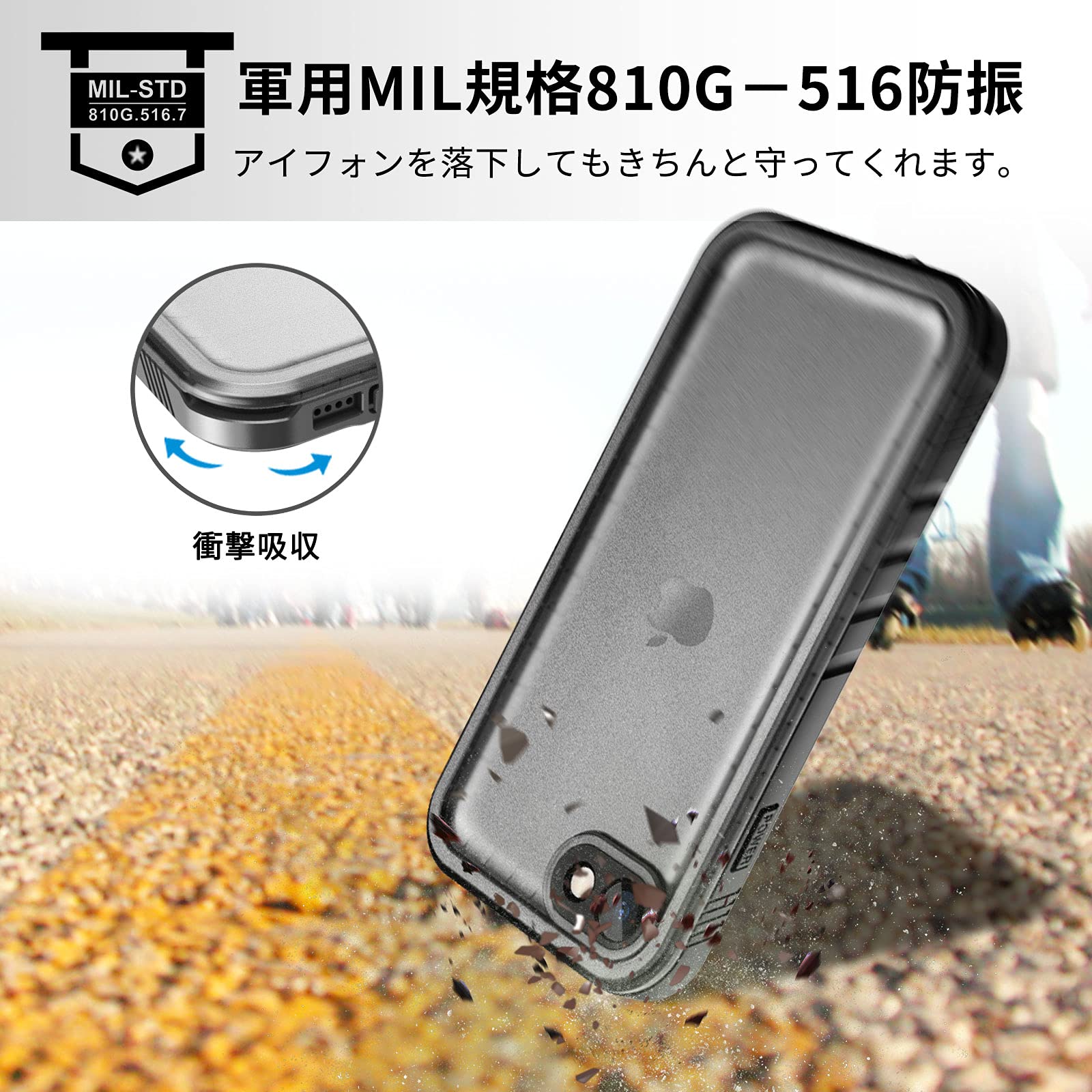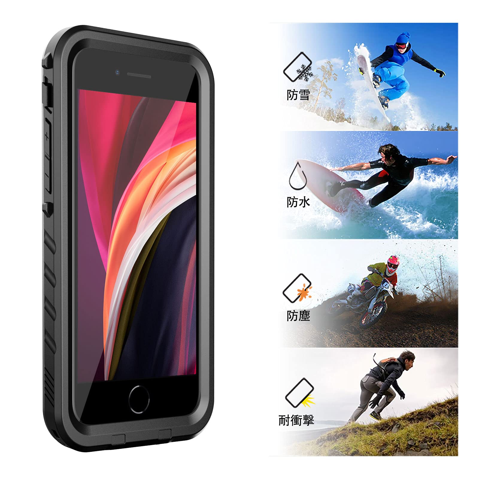 【耐衝撃&全面保護】軍用MIL規格810G-516防振材料が採用されていますので、衝撃にとても強いです。1000回開閉操作しても完全密閉の効果が保持できます。360°全方位からiPhone SE3を保護してくれます。夏の海、プール、砂浜と冬のスキー場など、様々な場所で携帯を快適に活用できます。建築の工事に使用は一番最適です。