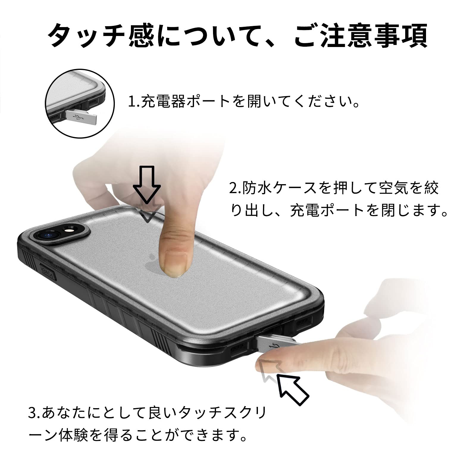 【高透過率と高敏感度】iPhone SE2 保護ケース表面は高透過率と高敏感度の素材を採用して、ケースを付けたままに携帯を自由操作できます。音質にまったく影響がありません。(ご注意:防水ケースを完全に密封するのため、iPhoneにほかの保護フィルムを貼らないでください。)