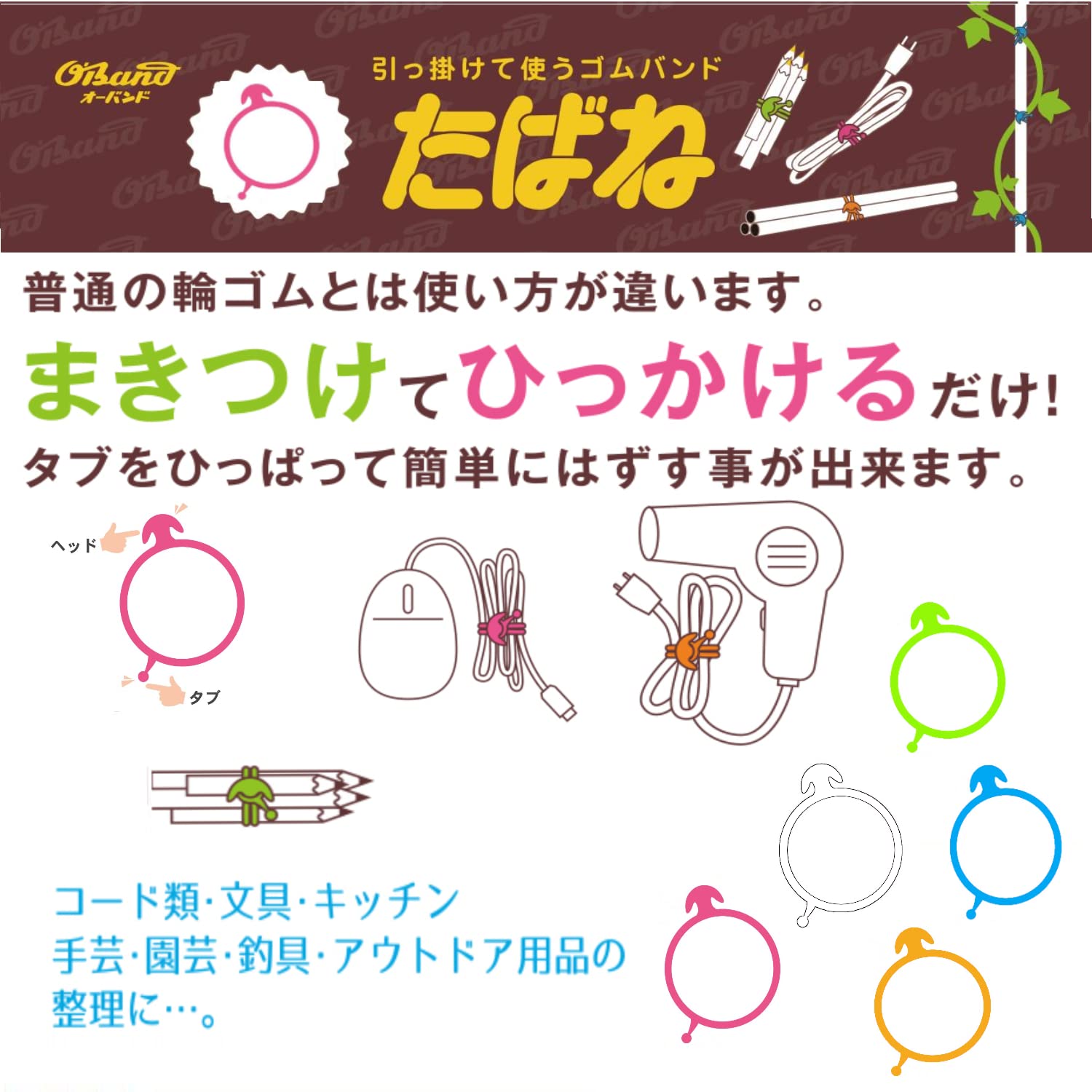 輪ゴムを巻きつけて、ひっかけるだけでワンタッチ束ね ( タバネ )!
