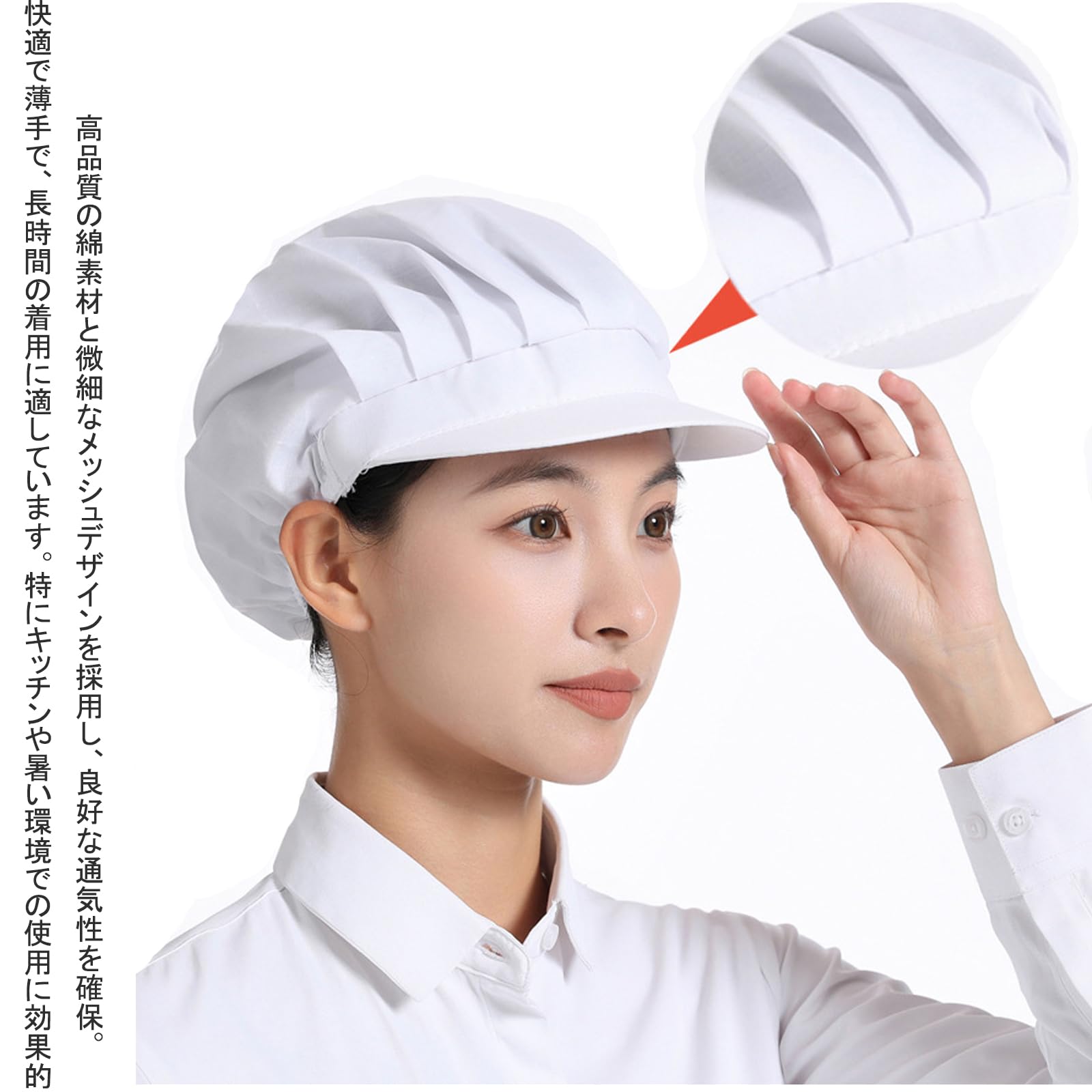 高品質の綿素材と微細なメッシュデザインを採用し、良好な通気性を確保。快適で薄手で、長時間の着用に適しています。特にキッチンや暑い環境での使用に効果的です。
