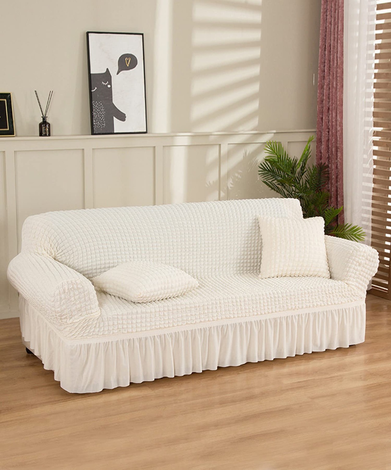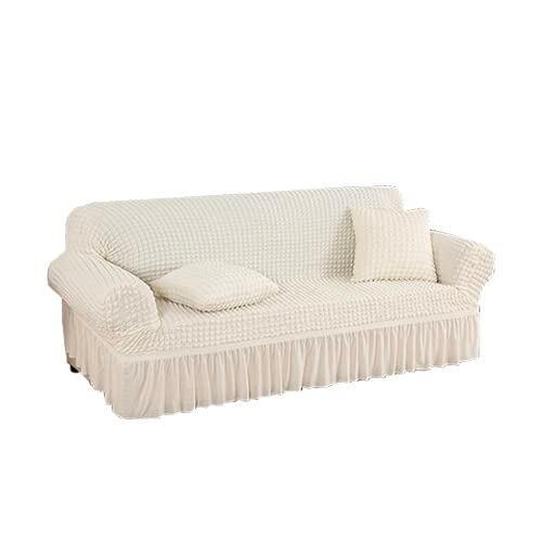 ソファーカバー 肘付き ストレッチ フリル ソファカバー 北欧 かけるだけ 伸縮性 フィットカバー 伸びる ストレッチ性 簡単取付 洗える 洗濯可【オフホワイト、3人掛け(190-230cm)】