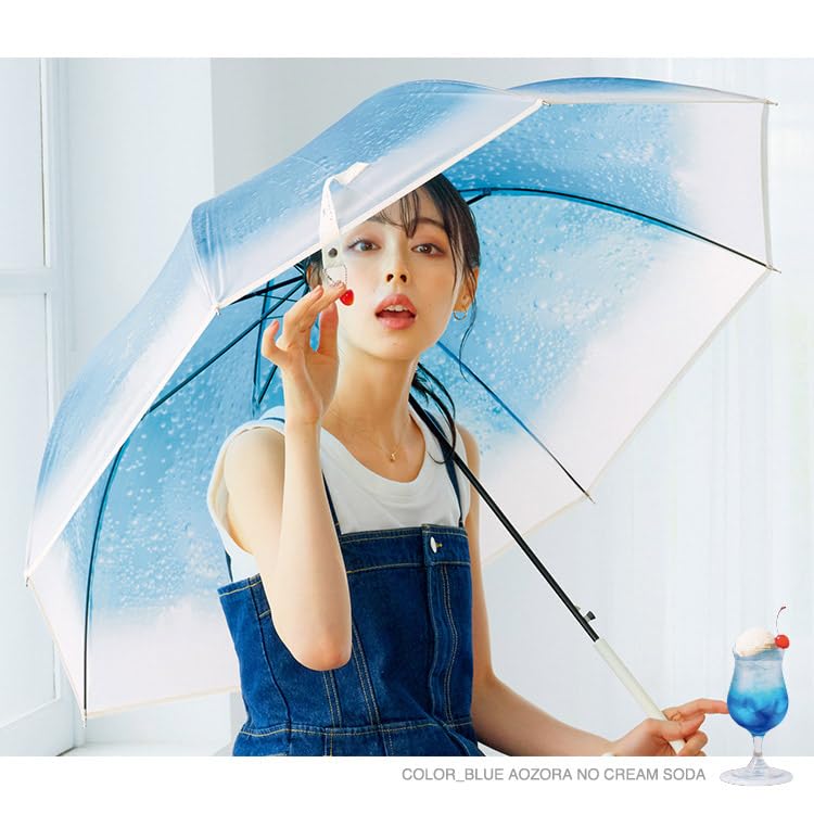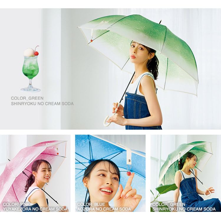 Wpc. 雨傘 [ビニール傘] 旅する喫茶×Wpc. クリームソーダアンブレラ ブルー 長傘 60cm レディース 大きい さくらんぼ チャーム 映え レトロ 純喫茶 おしゃれ 可愛い 女性 PT-TA01-001