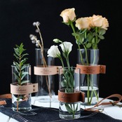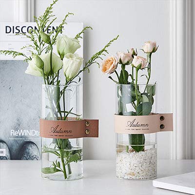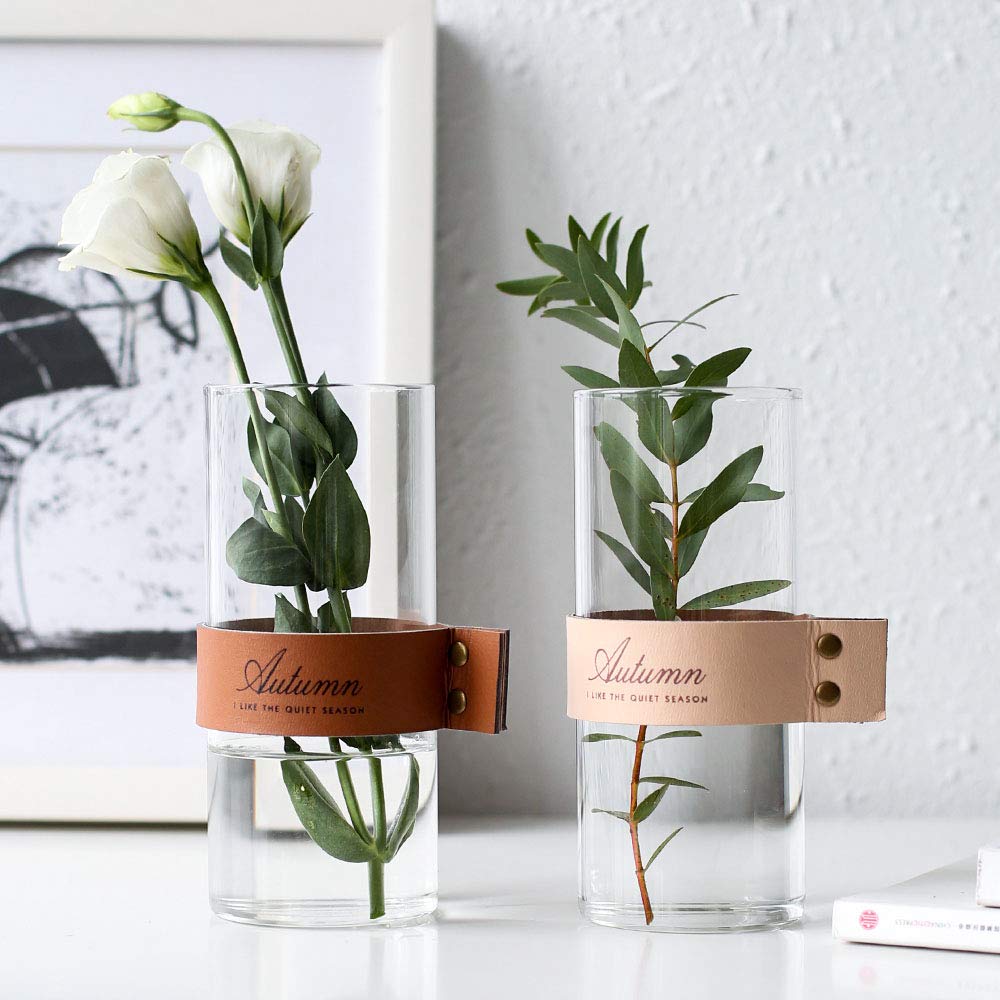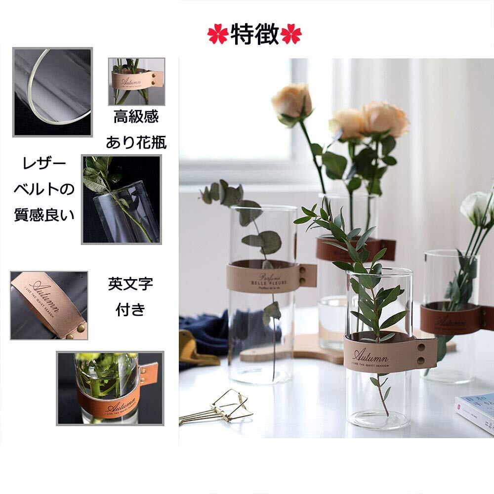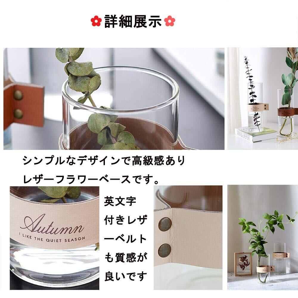 安定感が抜群でどんな花にも合うレザーベルト付きガラス花瓶です。 使いやすい、シンプルなデザインのレザーフラワーベースです。花だけでなく、葉もの、枝もの、実ものにもおすすめです。