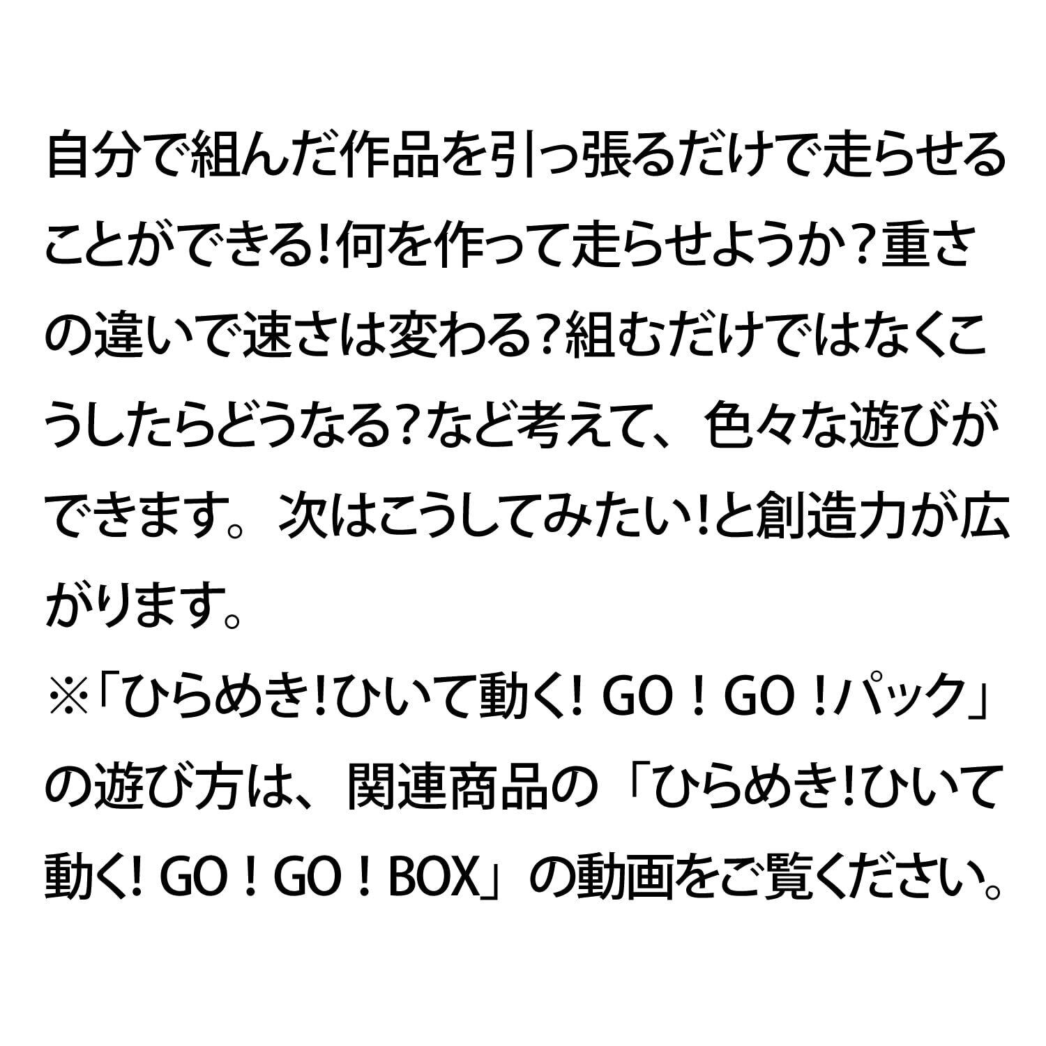 ※本品だけでは遊べません。お手持ちのGakkenニューブロックと合わせて遊んでください。 自分で組んだ作品を引っ張るだけで走らせることができる! 何を作って走らせようか?重さの違いで速さは変わる?お手持ちのニューブロックの遊びが広がるパーツセットです。ボーリング遊びなど乗り物以外にもたくさん遊びを作れます。