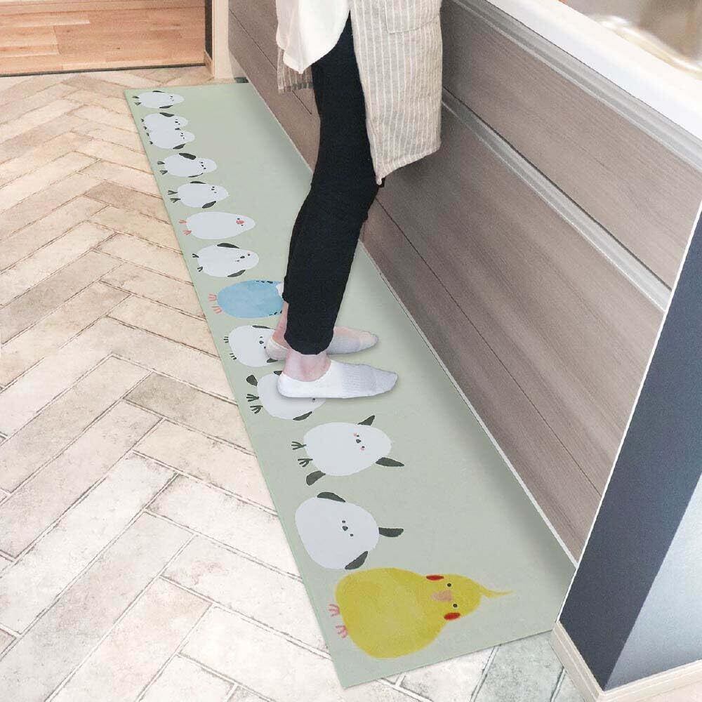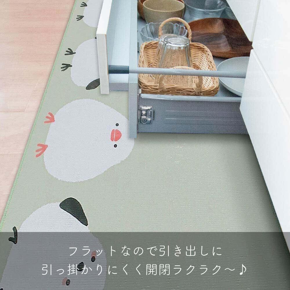 オカトー Fluffit キッチンマット インテリアマット コトリ すべり止め加工 フラットで掃除機がかけやすい 床暖房対応 洗える 45×240cm