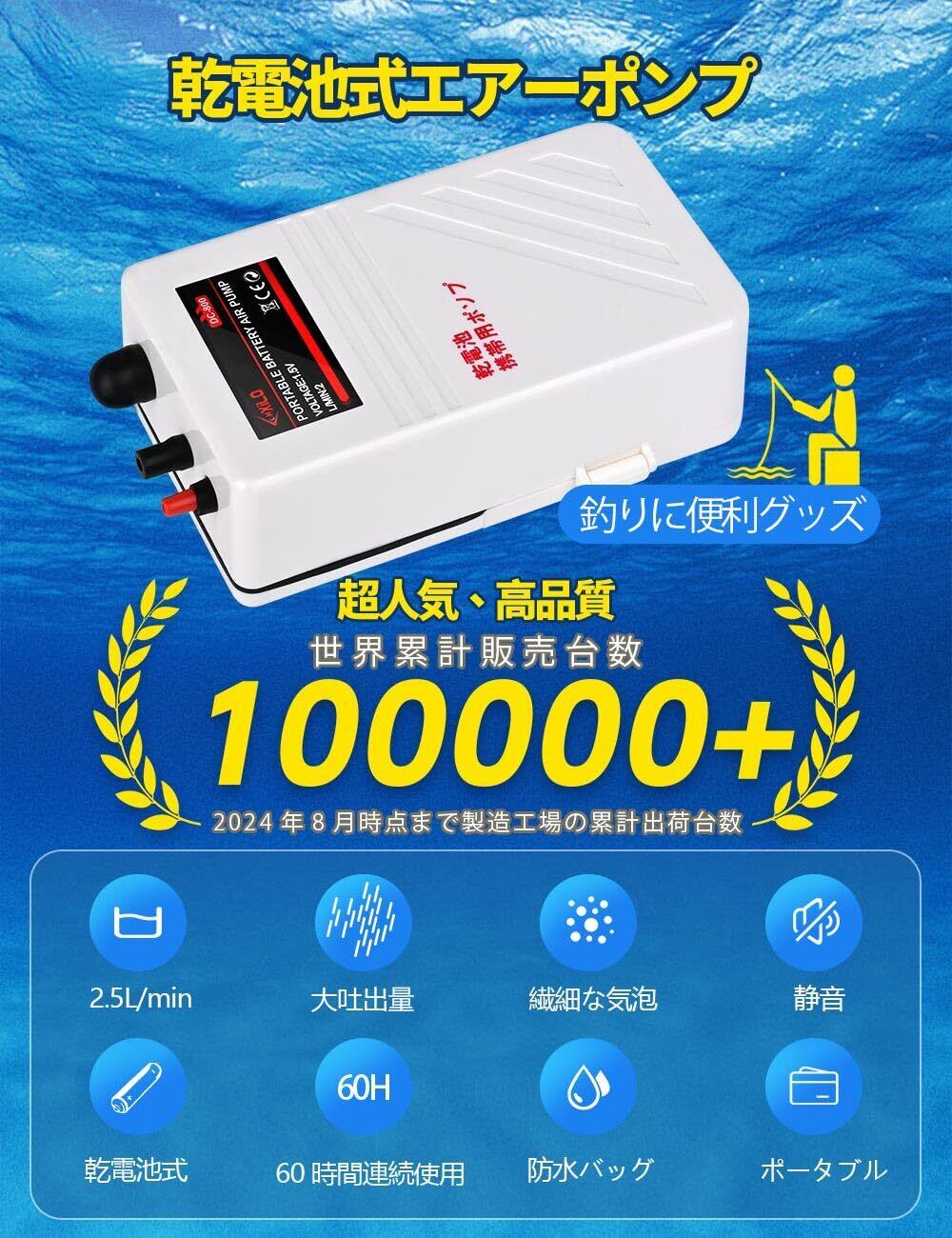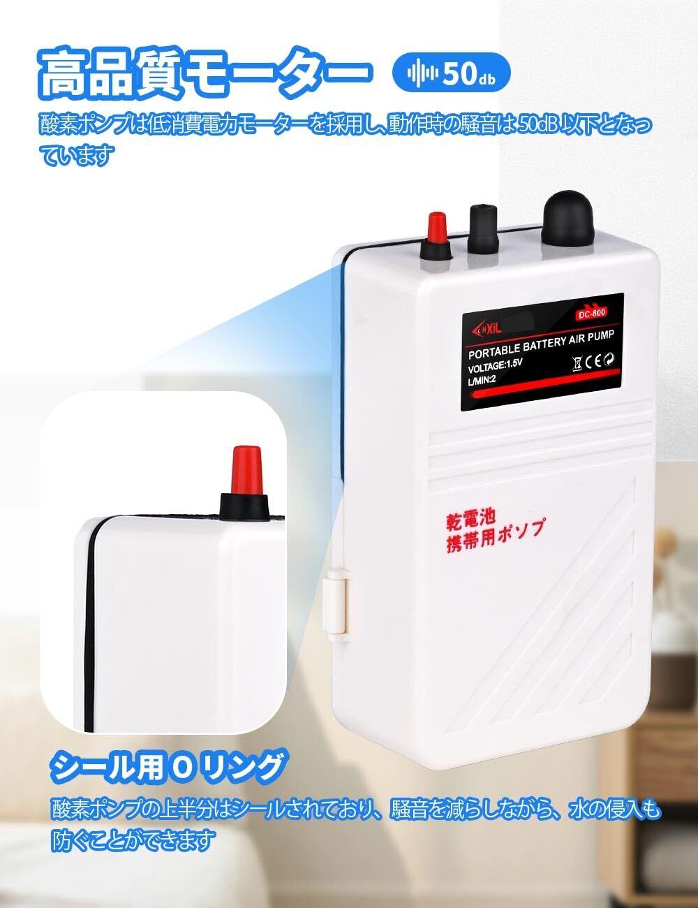 釣り エアーポンプ 乾電池式 携帯式 エアポンプ 水槽 ポンプ ブクブク 単1型乾電池2本 付属品にはチューブ、ストーン、逆流防止弁、防水収納袋 釣り用/アクアリウム適用