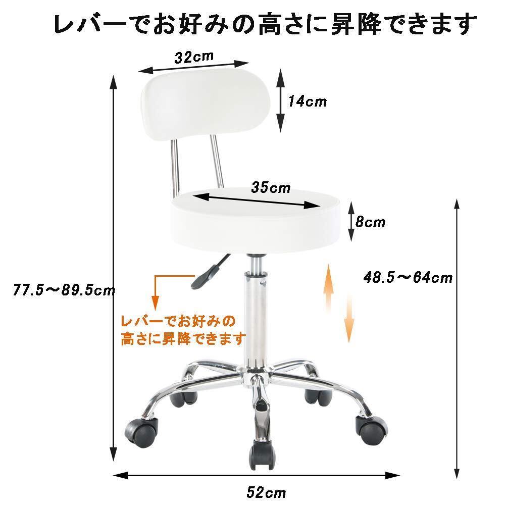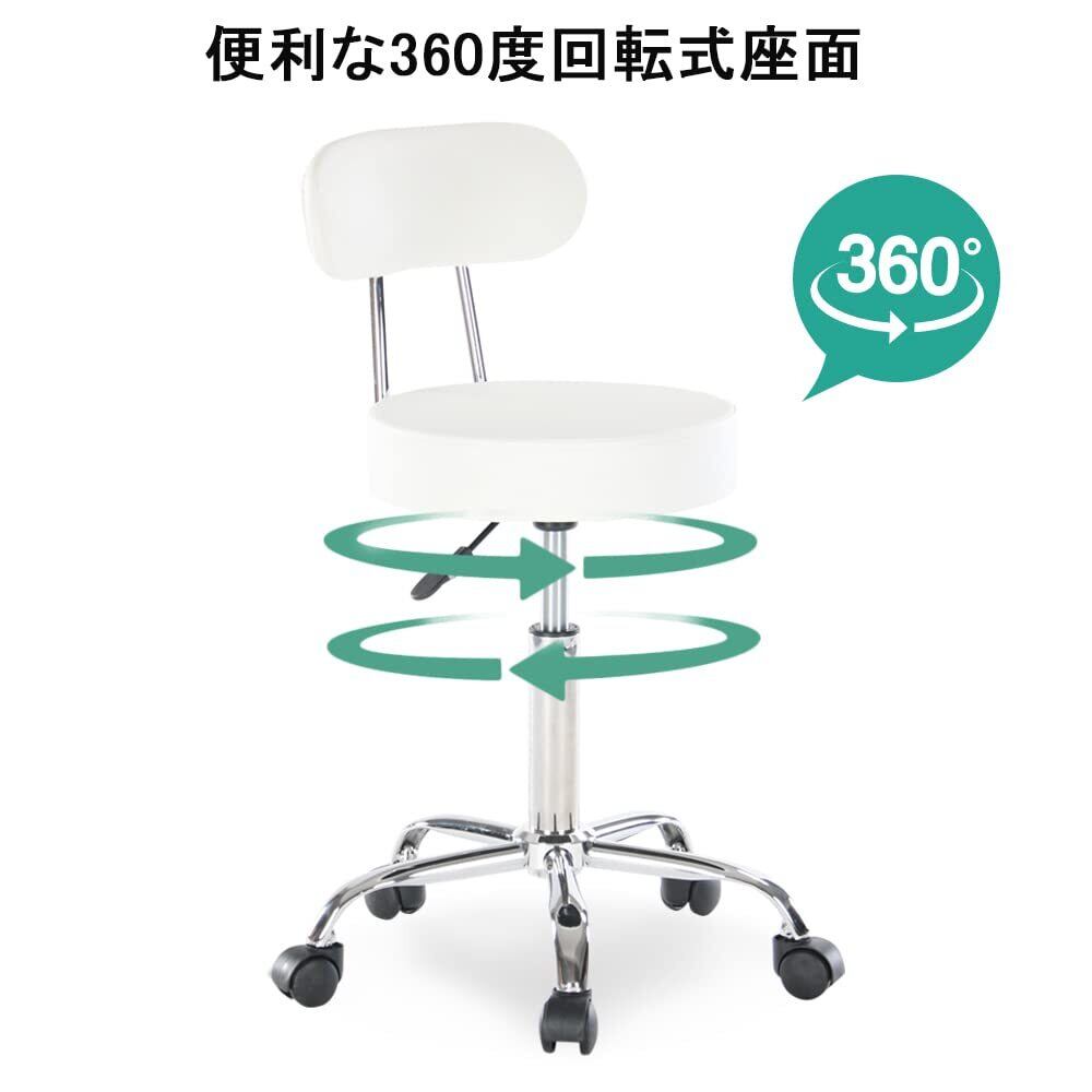 Altrobene 丸椅子 背もたれ付き カウンターチェア キャスター付き 昇降式 スツール 座り心地がいい 高さ調整 椅子 360°回転 診察椅子 キッチン 台所仕事 チェア ホワイト