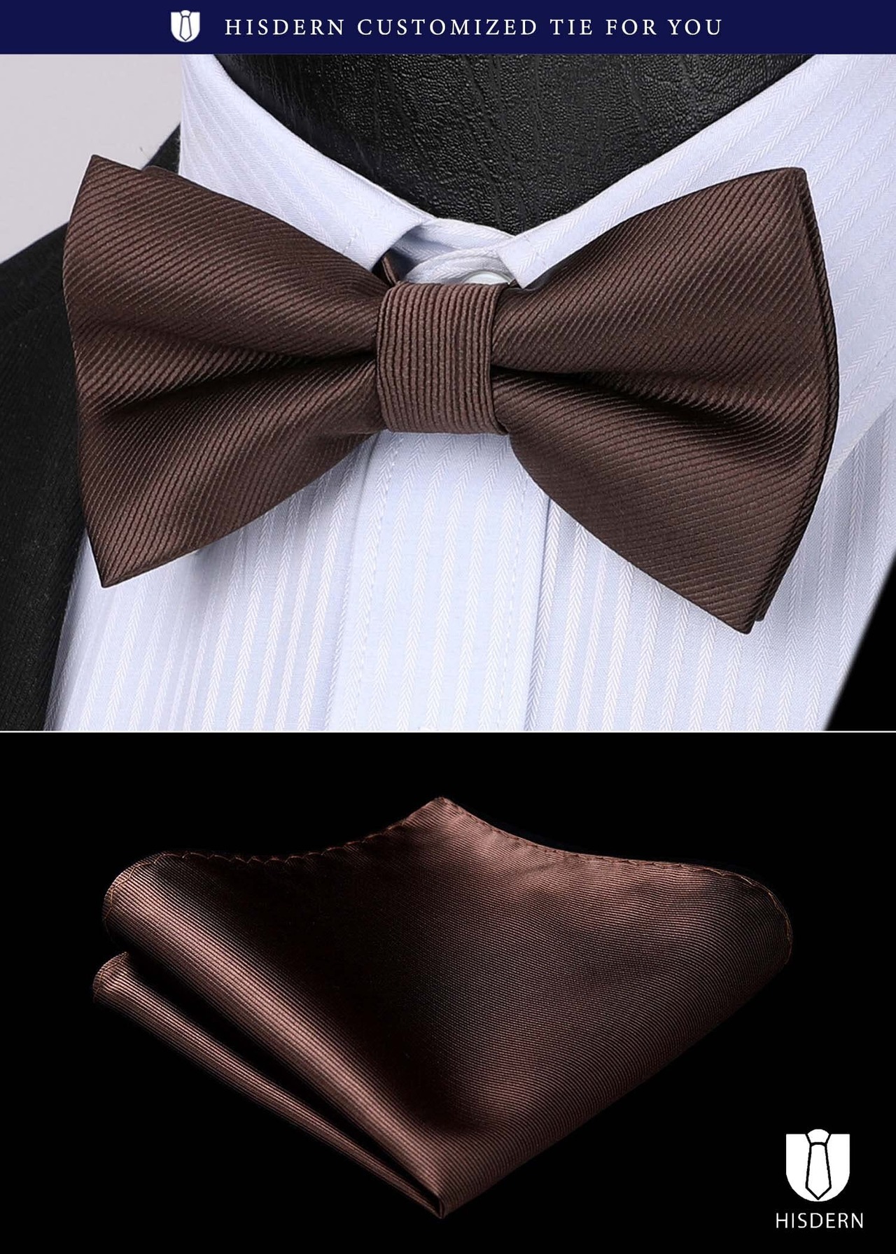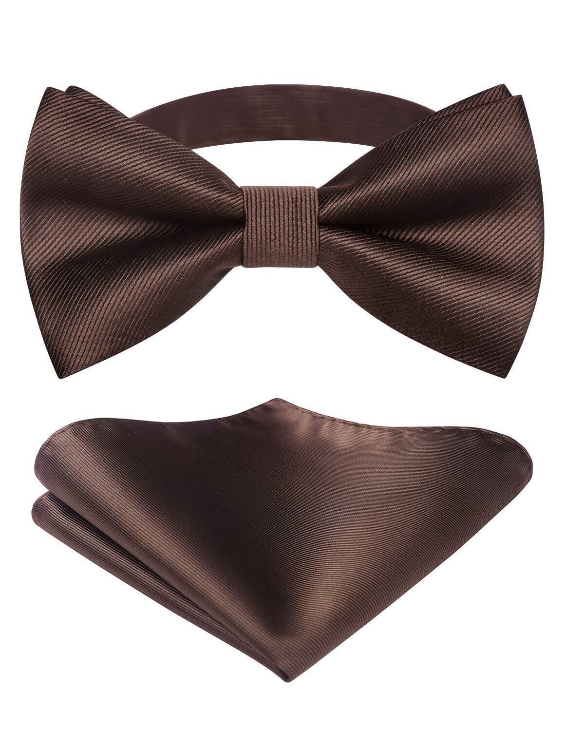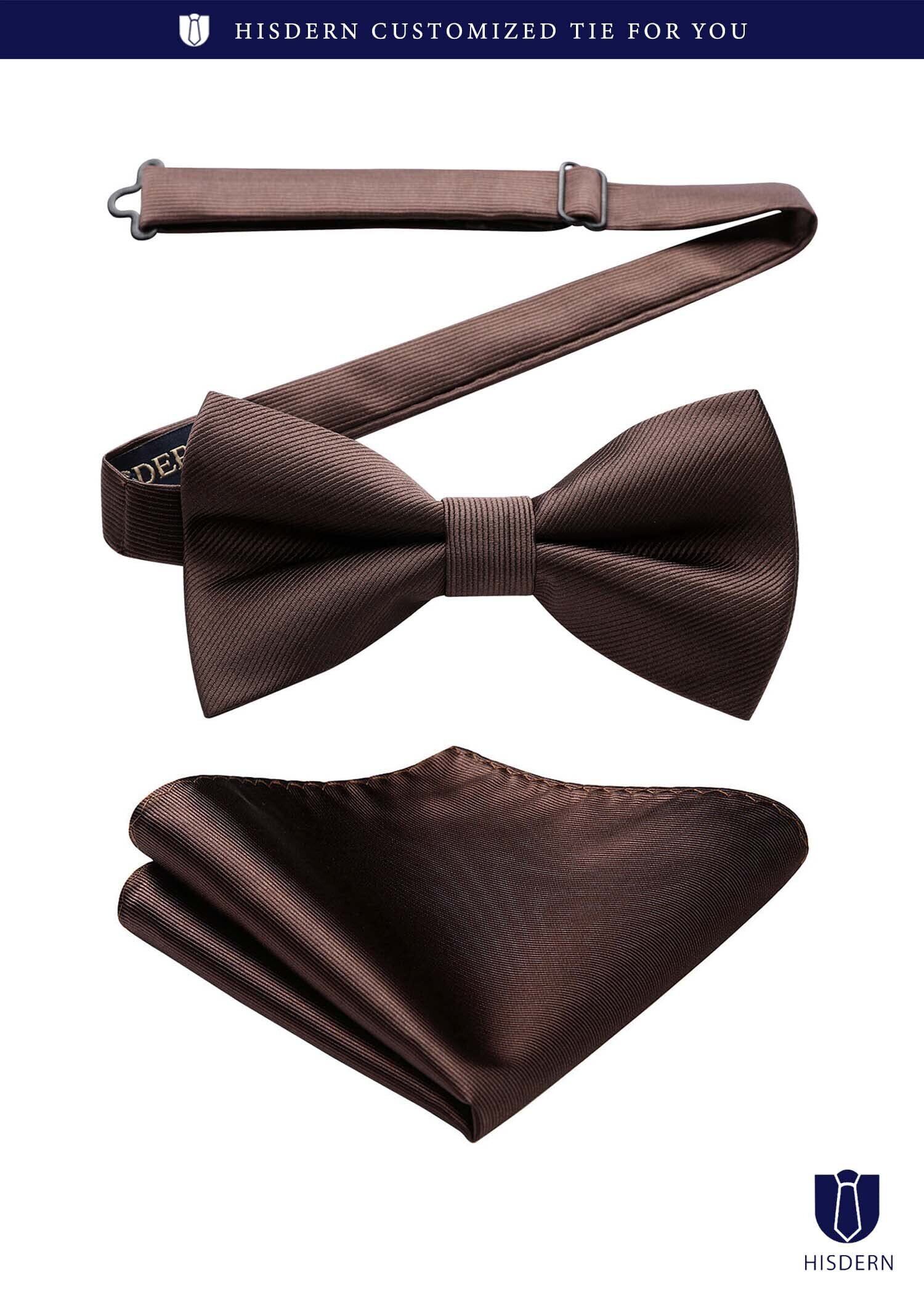 [HISDERN] BR-03 蝶ネクタイ ワンタッチ チーフ付き 簡単着脱 メンズ 無地 ボウタイ セット 結婚式 入学式 披露宴 プレゼント パーティー 色選択