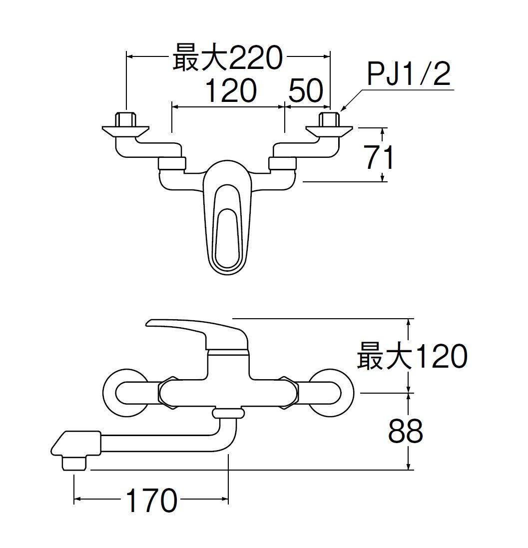取付穴径:PJ1/2 取り付け可能な配管ピッチ:120~220mm