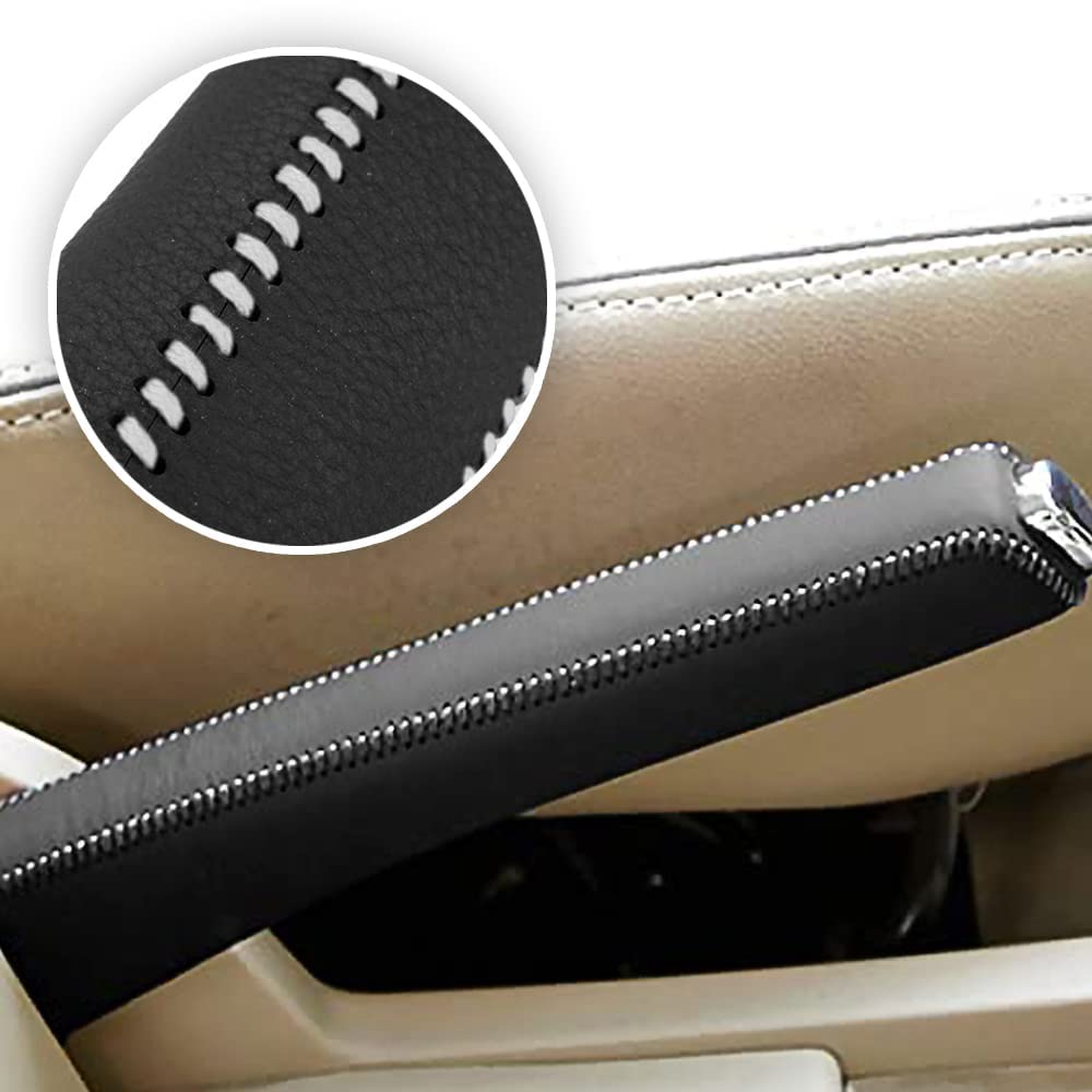YFFSFDC 本革 サイドブレーキ カバー 汎用 レザーカバー レザー 保護 汚れ防止 上品 高級 取り付け簡単 本皮レザー製 パーキングブレーキ 保護 グレーの白