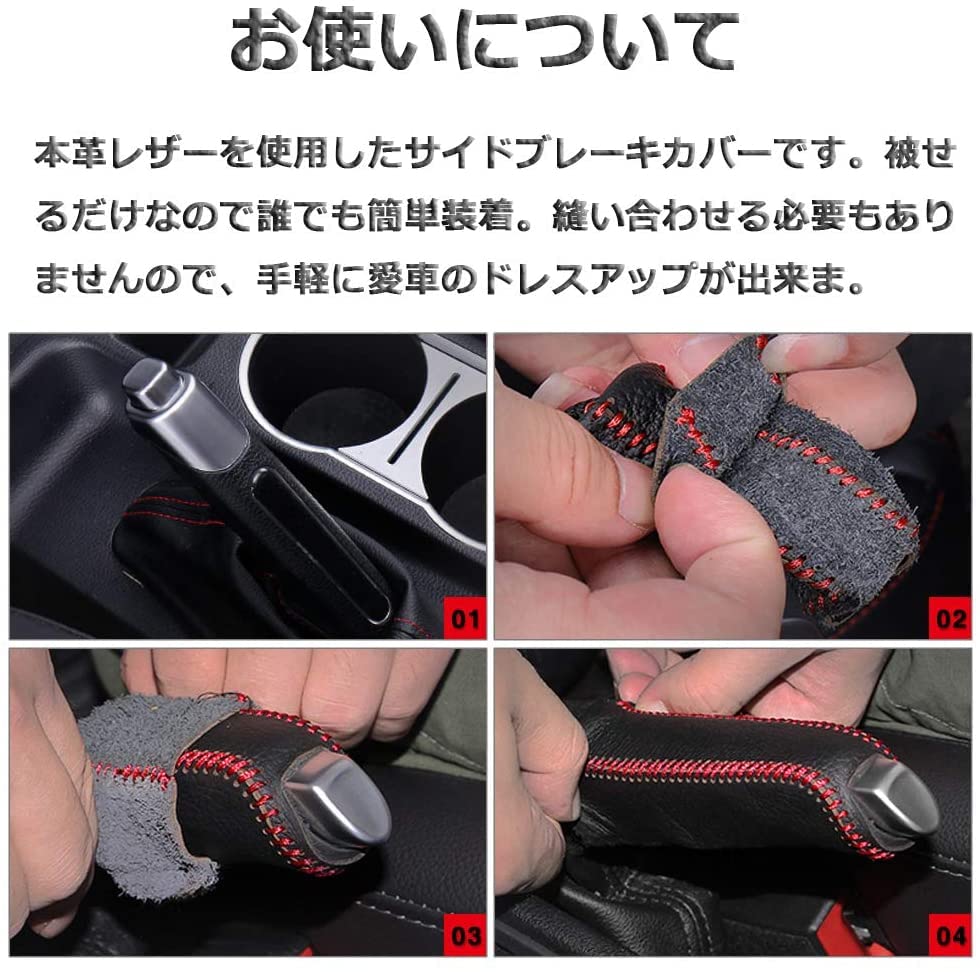 3:簡単装着:本革レザーを使用したサイドブレーキカバーです。被せるだけなので誰でも簡単装着。縫い合わせる必要もありませんので、手軽に愛車のドレスアップが出来ま。
