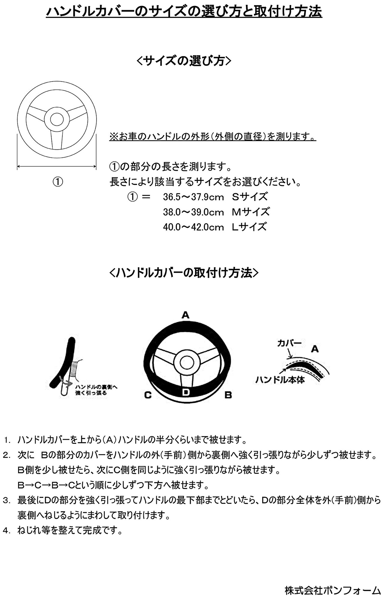 ボンフォーム(BONFORM) ハンドルカバー MAXレザー 軽/普通車 ステアリングカバー S:36.5-37.9cm ブラック 6946-01BK