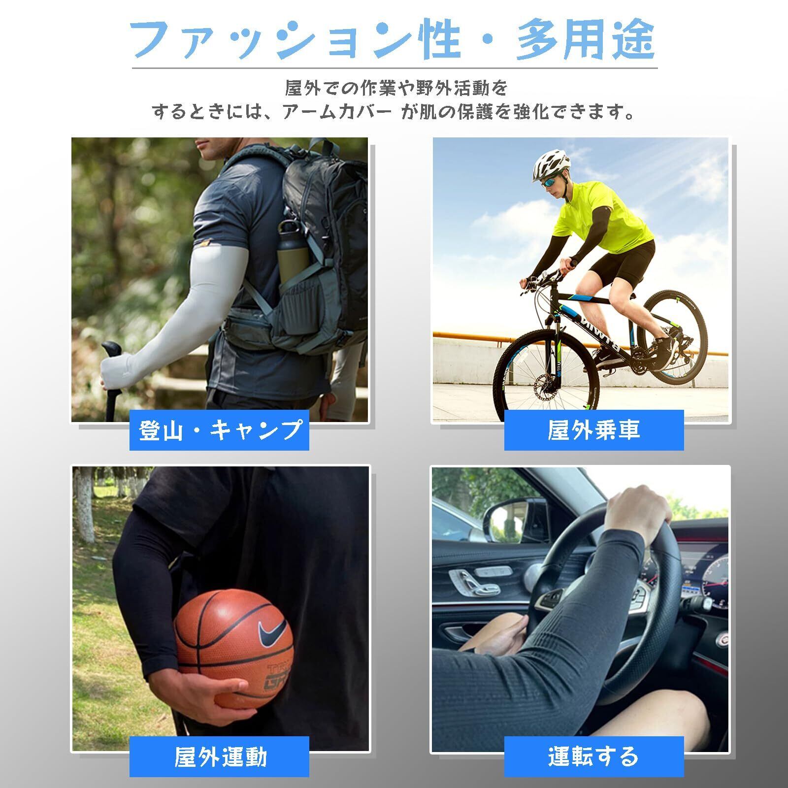 [XGIUINI] 4枚組 アームカバー メンズ 【-5°冷感】 UVカット 腕カバー 冷感 無地吸汗速乾 滑り止め UPF50+UV対策 日焼け止めカバー 夏用・ストレッチ・抗菌防臭 スポーツ 登山 野外活動 紫外線対策