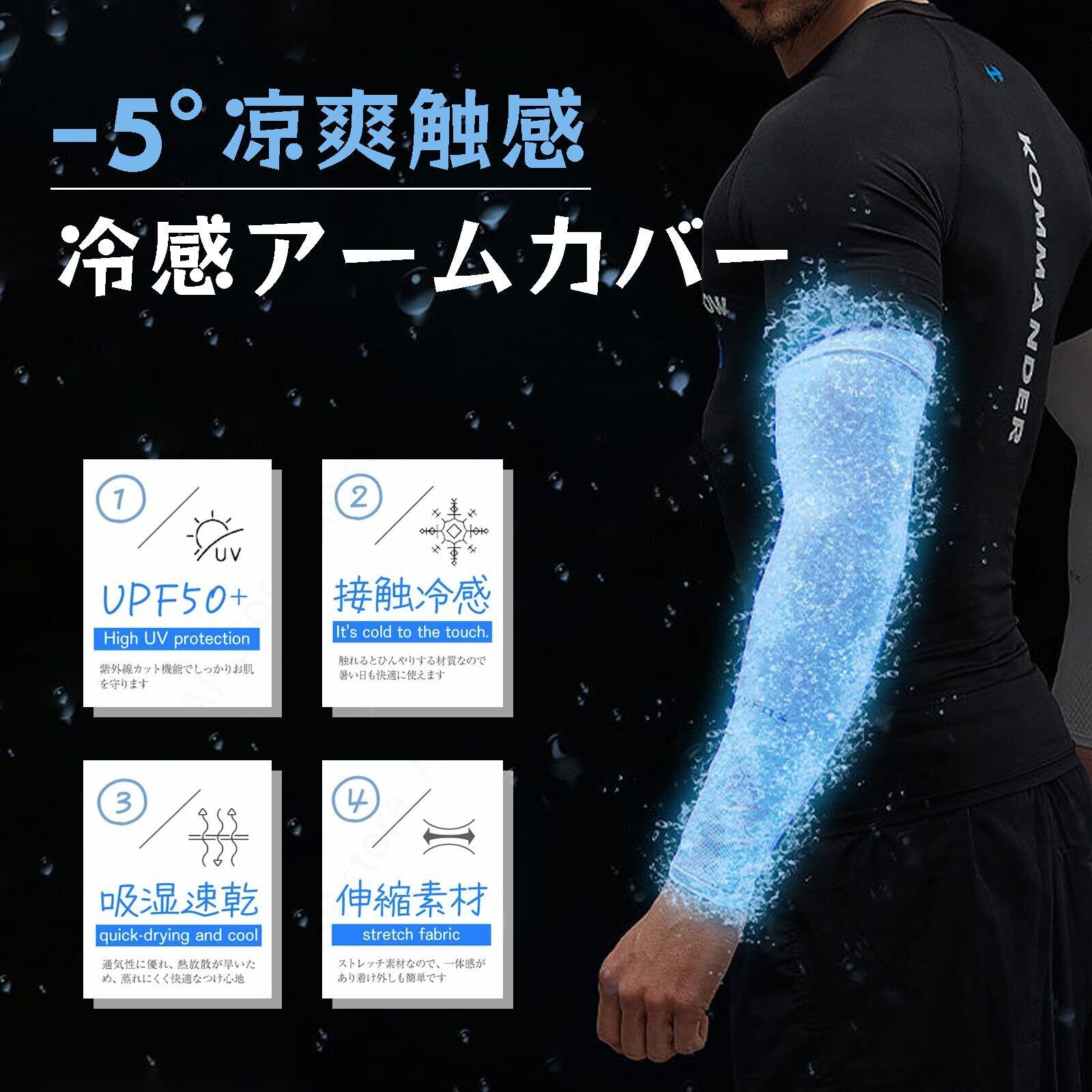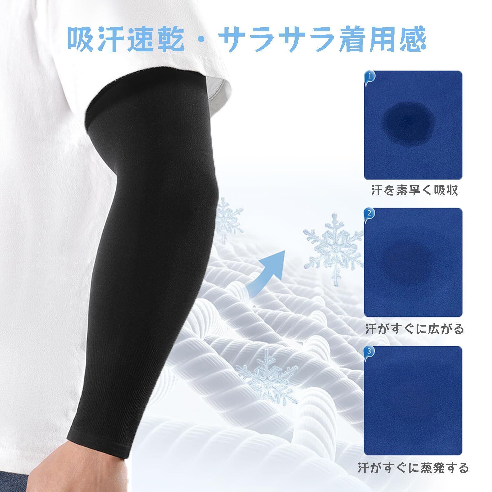 【紫外線をしっかり遮断】UPF50+で紫外線をしっかりカットしてくれます!2024新発売、生地密度は従来製品の1.5倍、UV遮光率99%のアームカバーです。紫外線から腕を保護し、日焼けや紫外線による肌のダメージを軽減する役割があります。通常の2.5倍の伸縮性で手首から腕を完全に保護。