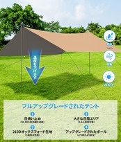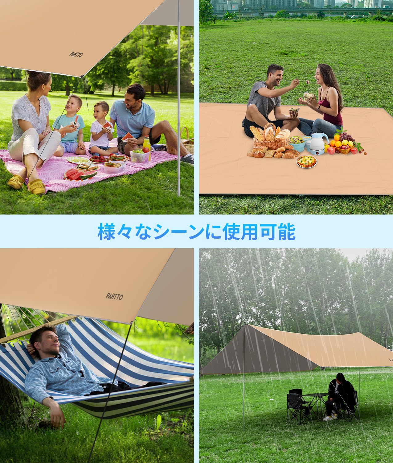 【強化版】 タープテント アウトドア テントタープ キャンプタープ 3 mx3.6 m 防水タープ 日除け 遮熱 遮光 紫外線カット タープ テント アウトドア 軽量 ハイキング ピクニック バックパッキング向け キャンプ用品 高耐水加工