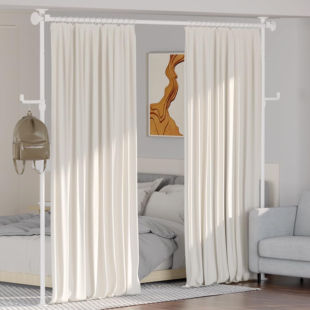 【2022最新】KELIXU 突っ張り式 パーテーション 間仕切り 高さ110~317cm×幅110~317cm つっぱり棒 カーテンレール ポール 縦横伸縮 取付簡単 リングとミニフック付き 白 おしゃれ 部屋 (2ポール ホワイト) | nico3588