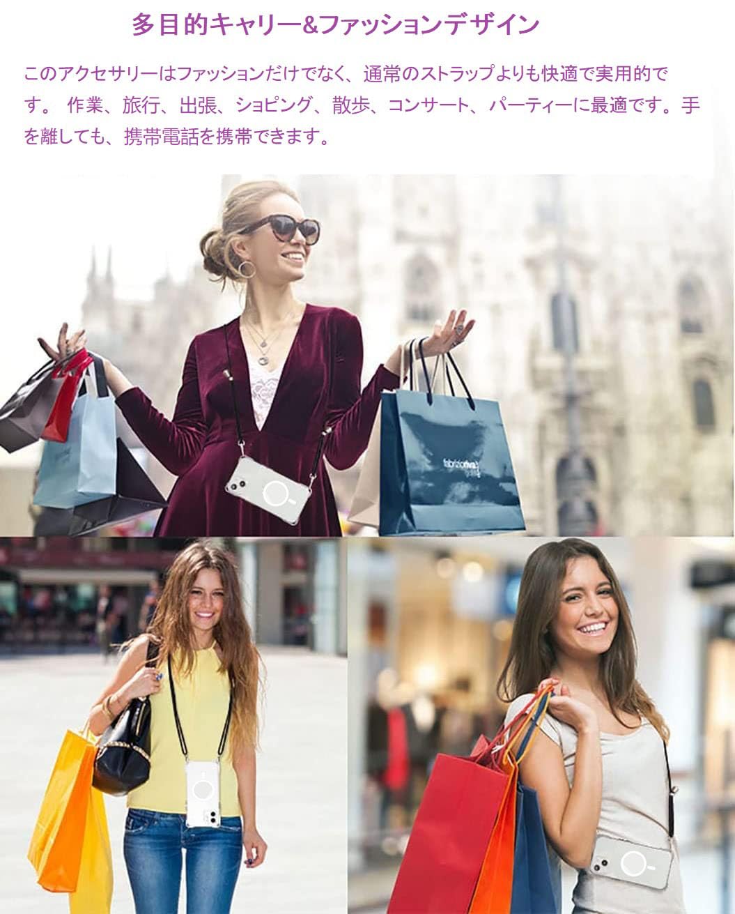【多目的キャリー&ファッションデザイン】電話ケースの特別な四隅のデザインにより、ストラップを垂直または水平にリンクできます、調節可能なストラップにより、サイド、またはフロントに持ち運べるときに完璧にあなたの隣に掛けることができます。 このアクセサリーはファッションだけでなく、通常のストラップよりも快適で実用的です。 作業、旅行、出張、ショピング、散歩、コンサート、パーティーに最適です。手を離しても、携帯電話を携帯できます。