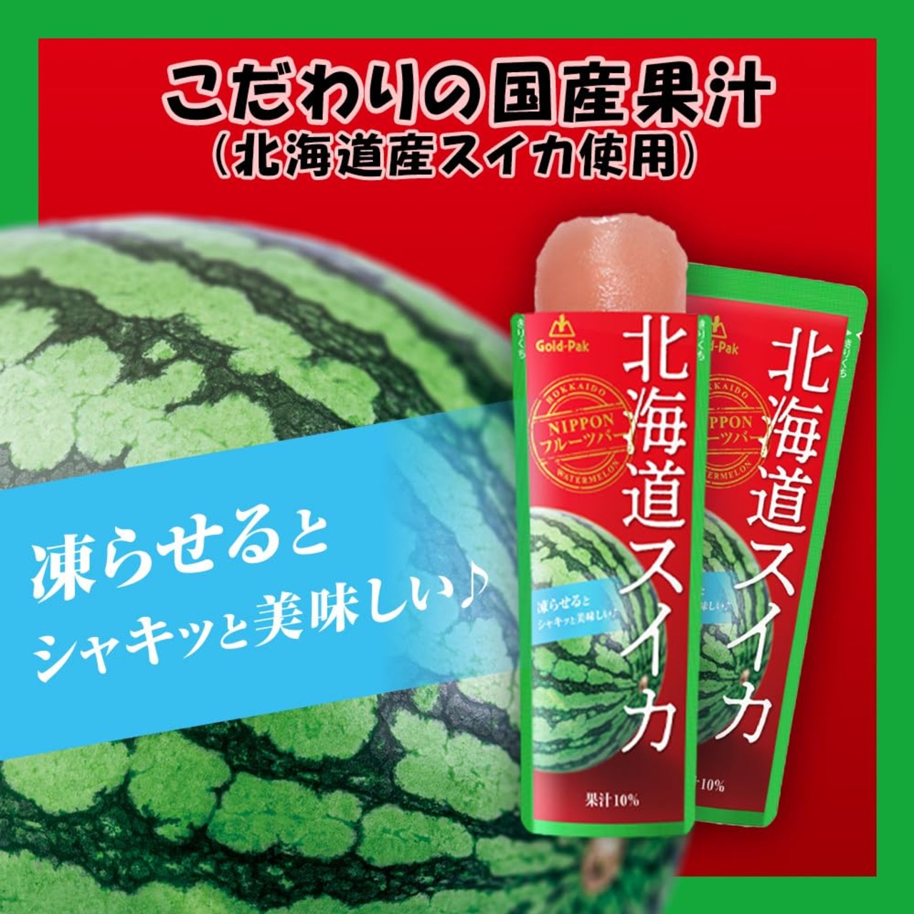 北海道産のスイカを使用しております。夏らしいスイカの甘さが本格的な味わえます。凍らせてシャーベットとして召し上がれます。
