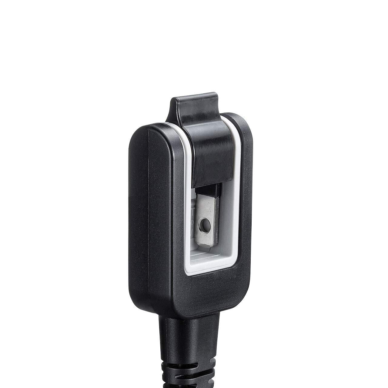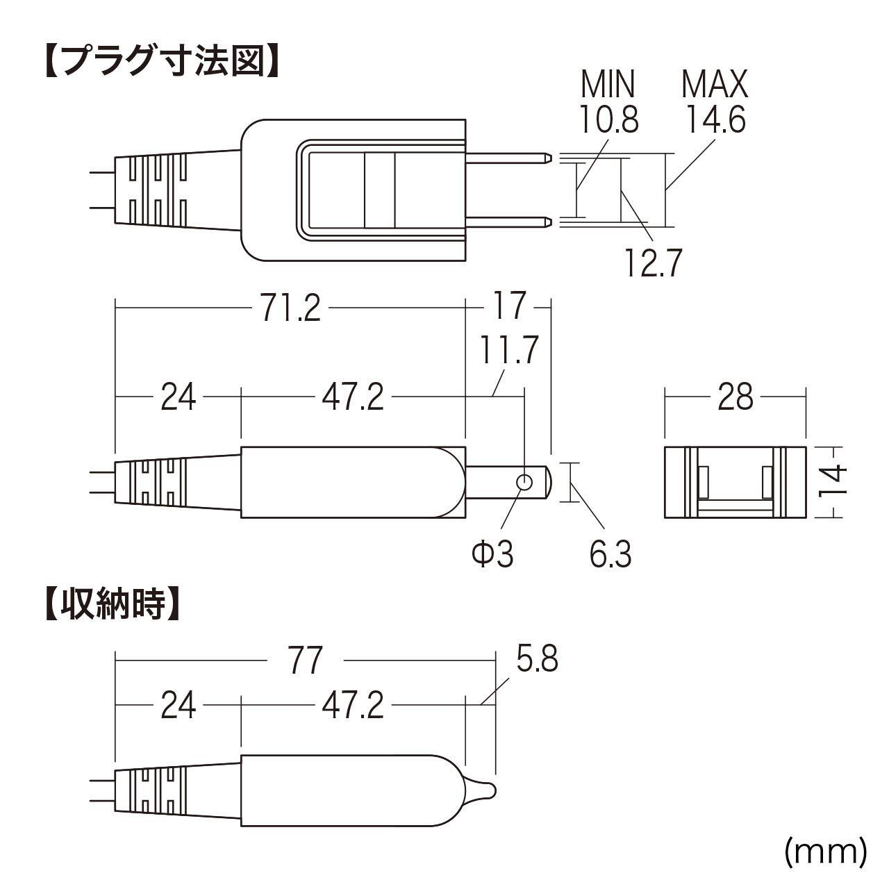 ■プラグ仕様:ACインレット(メガネ型・ストレートコネクタ)・2Pオス(絶縁キャップ付きプラグ収納式スイングプラグ)
