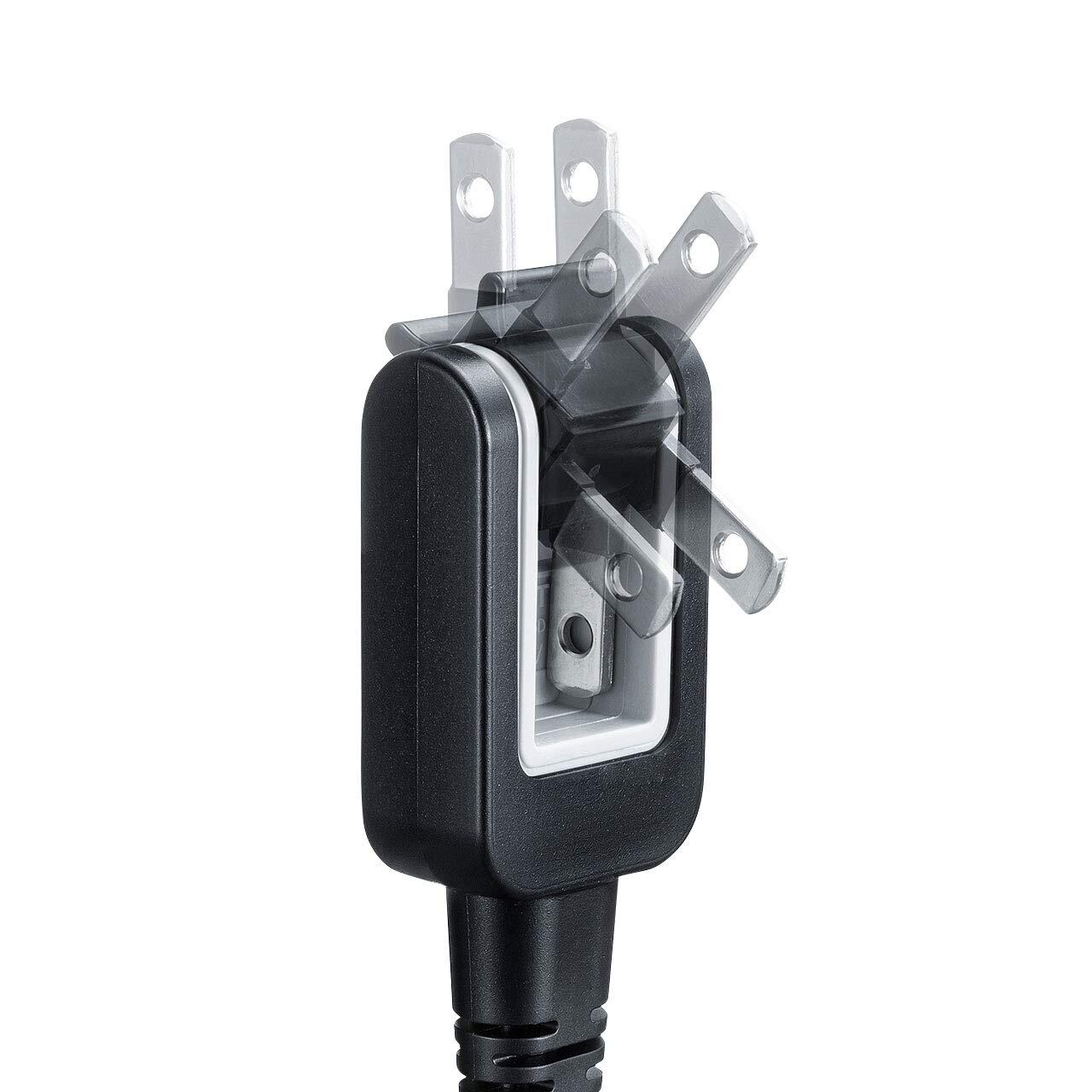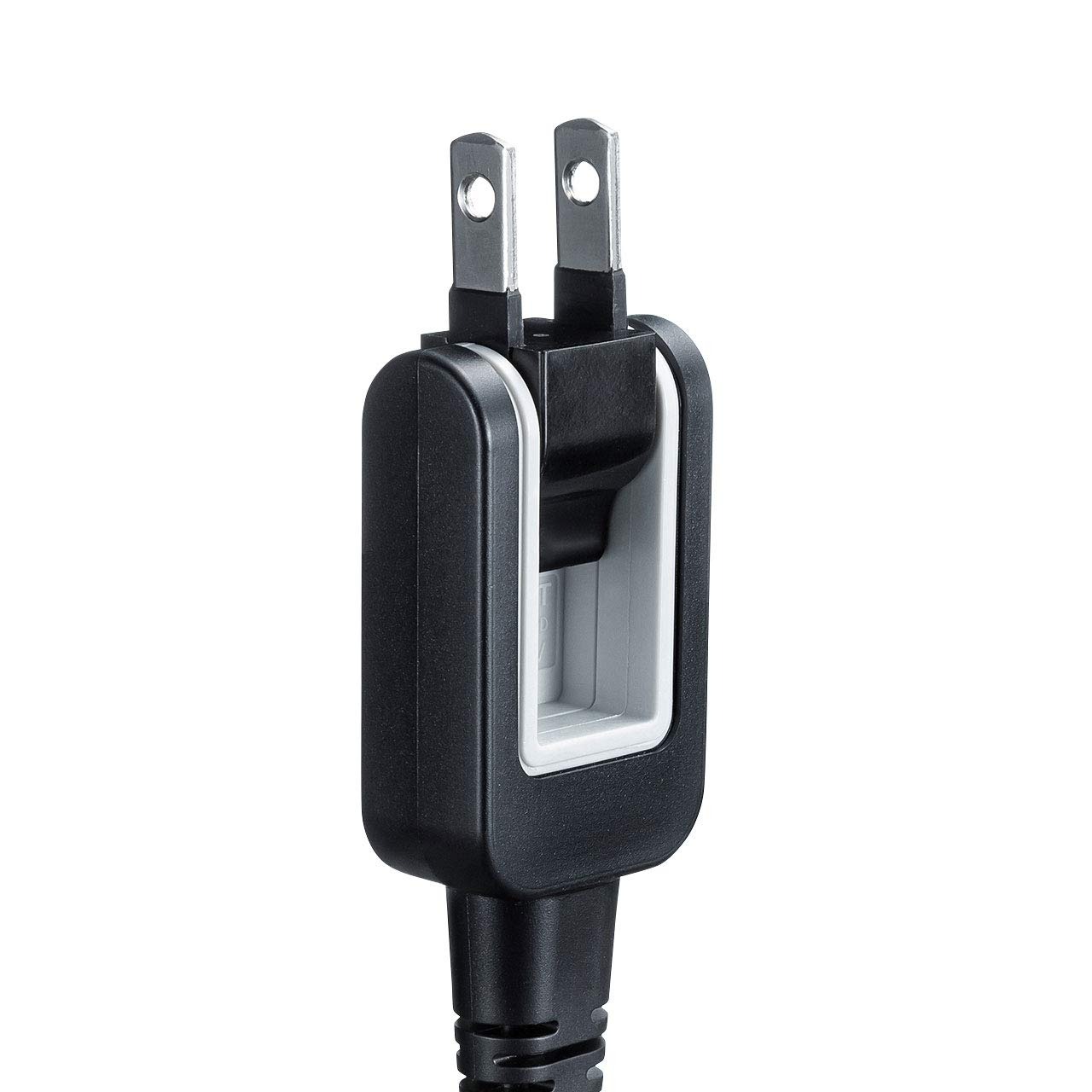トラッキング火災予防絶縁キャップが付いたプラグ収納型電源コードです。プラグが収納されているので、持ち運びにも便利です。