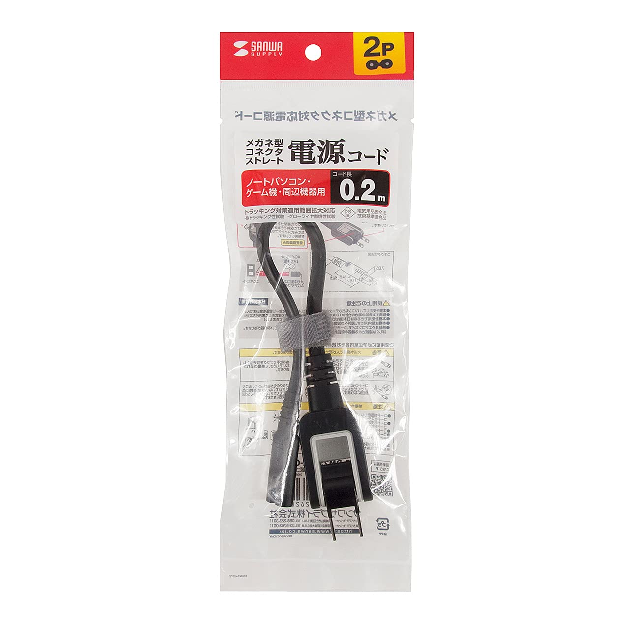サンワサプライ メガネ型コネクタ対応電源コード(0.2m) KB-DM2S12A-02