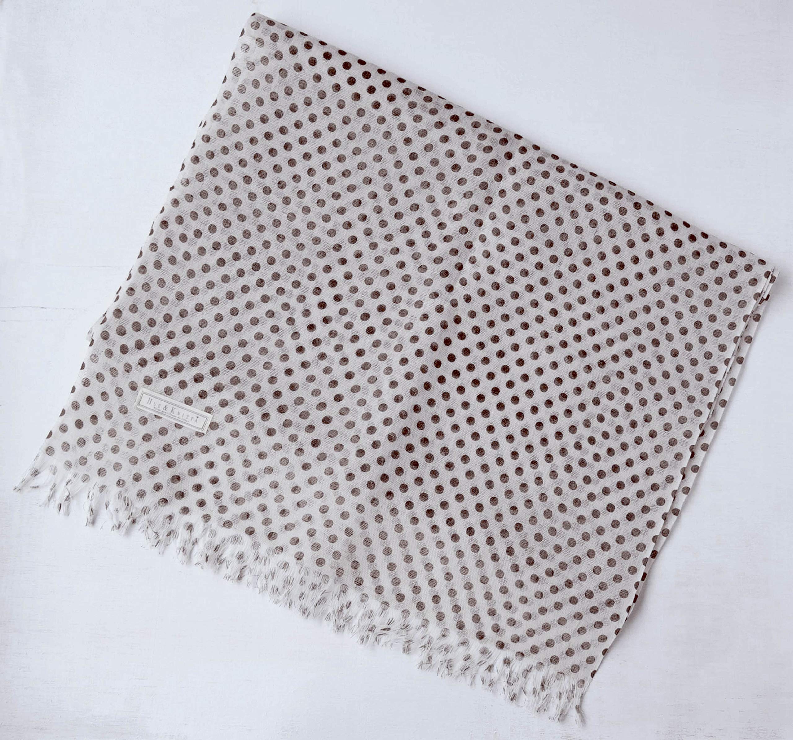 リネンコットンストール ドット ブラウン 約38×180cm(フリンジ除く174㎝) KYI-4010