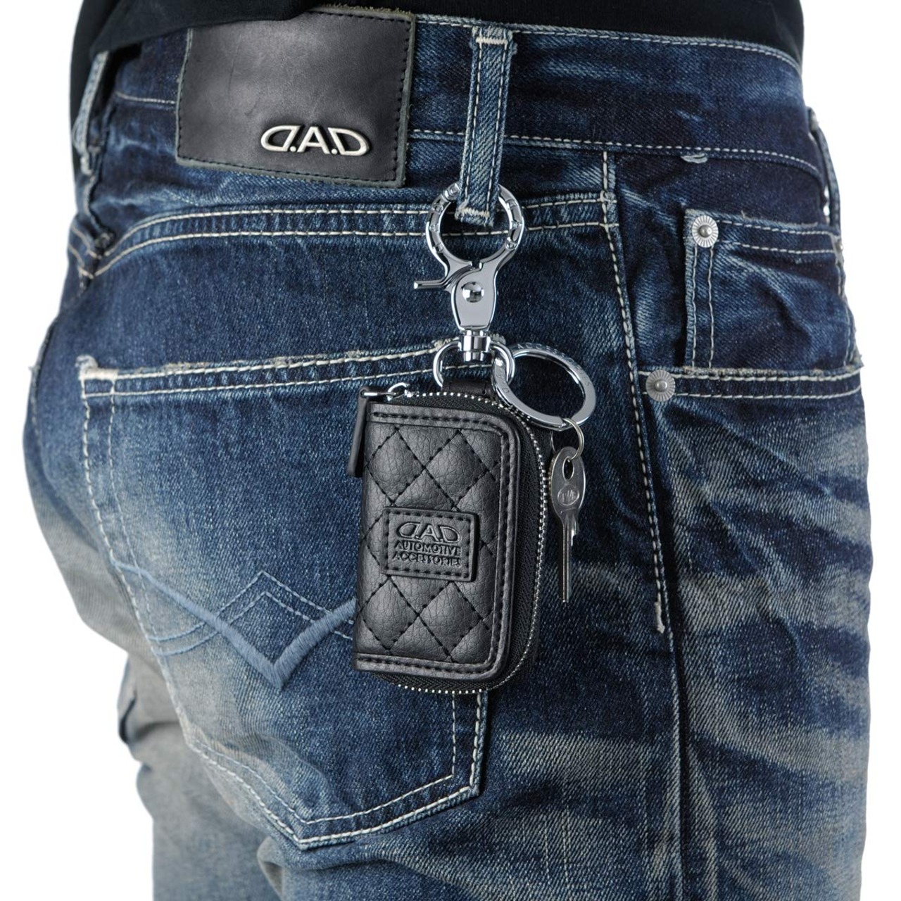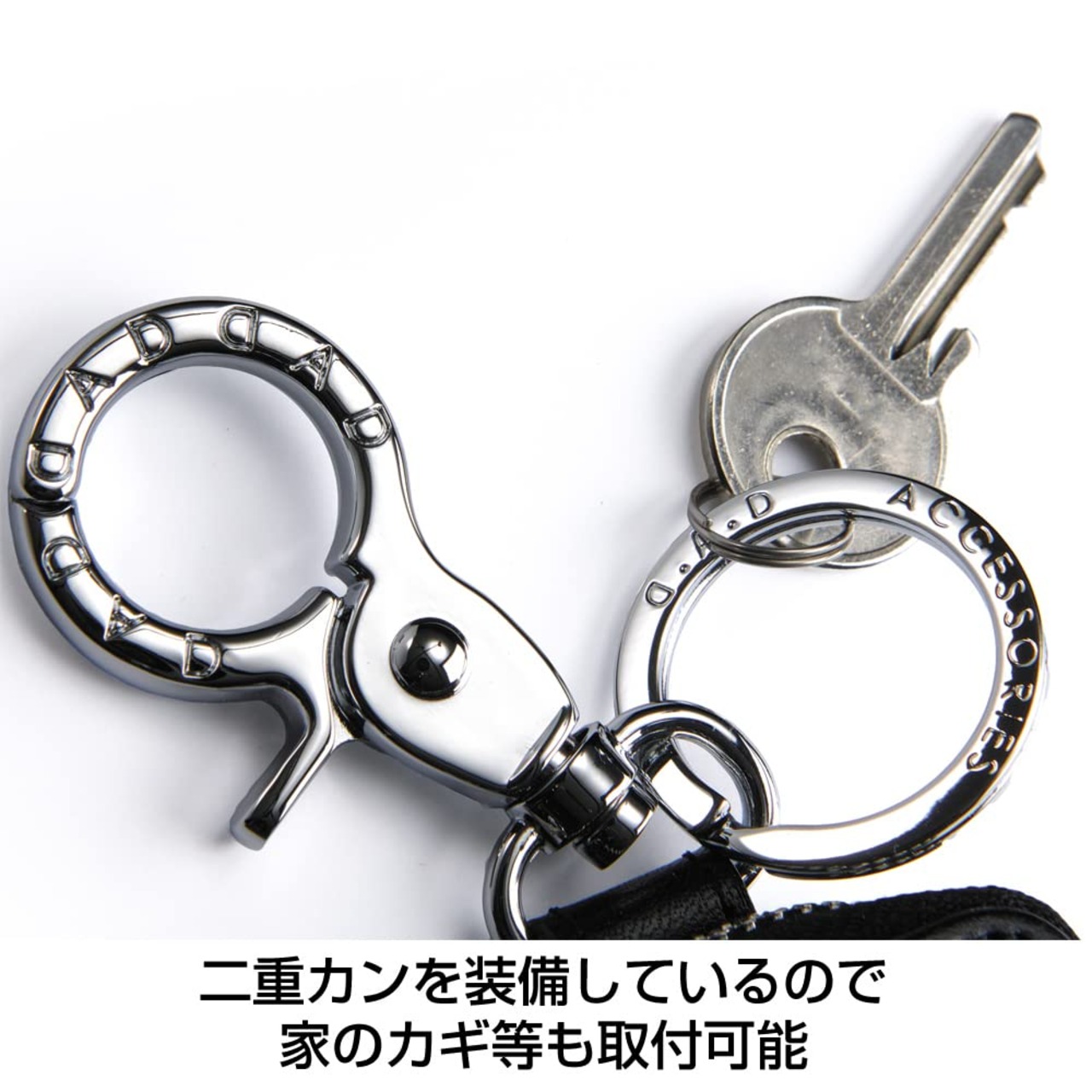 D.A.D ロゴ入り二重カン付き : フック部には、D.A.Dロゴ入り二重カンが装備され、よく使うガレージや家の鍵を付ける事が出来ます。