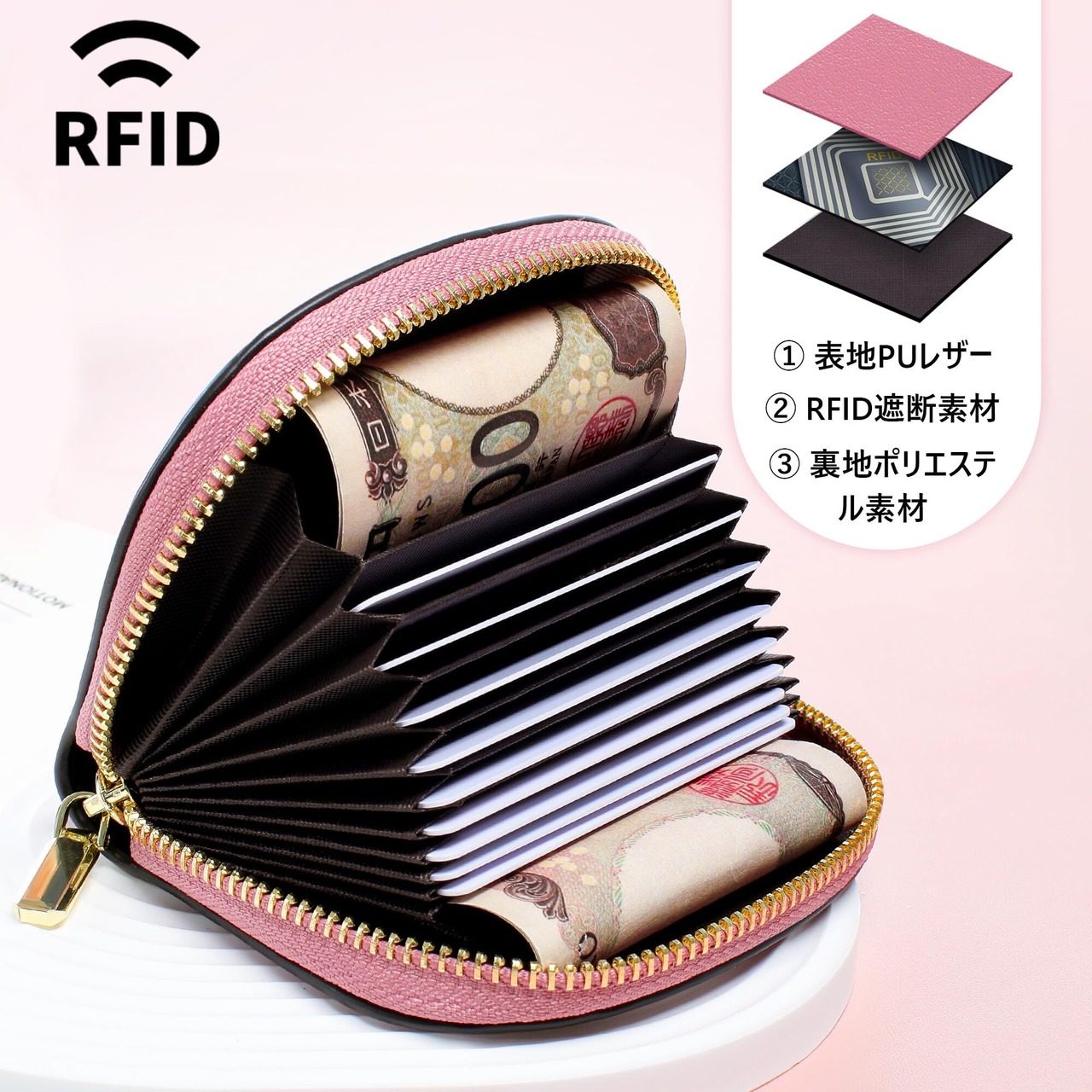 [Pomelo Best] クレジットカードケース じゃばら 磁気 スキミング防止 カード入れ レディース 薄型 軽量 ポメロ ベスト ピンク