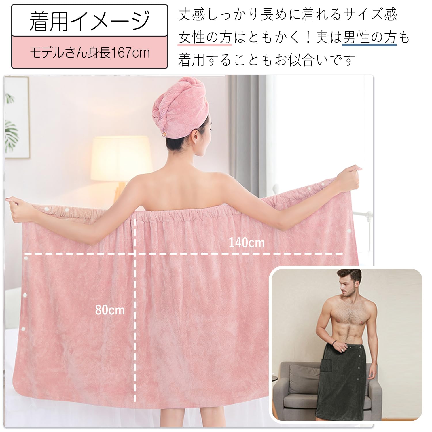 【 お着替え時に便利 ラップタオル】お風呂上がりの時サッと体を巻きつけて、ワンピースのように着用できるバスタオルはとても便利です、着心地が良く、通気性・吸水性・速乾性に優れています。体をしっかりと包み込むことで、すばやく体や髪の毛を乾かすことができます。
