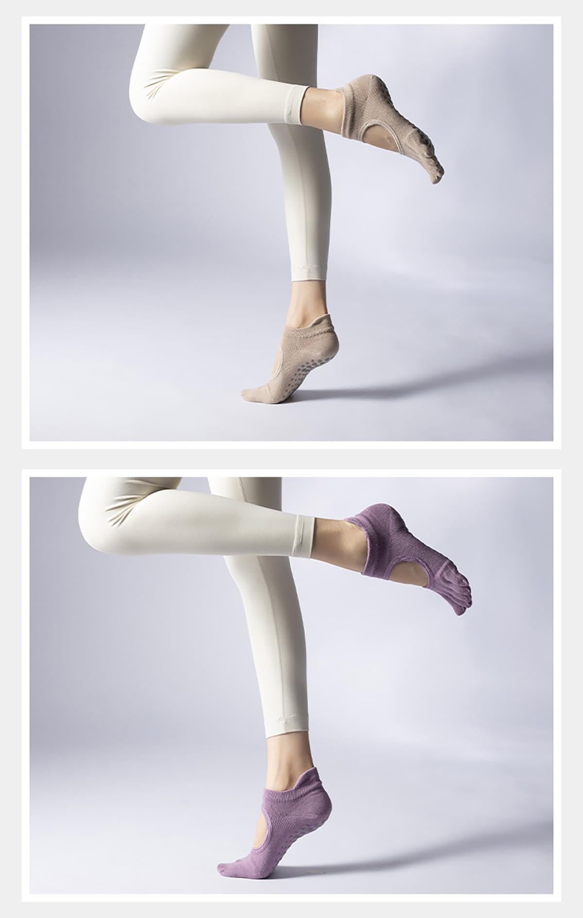 滑り止めグリップ付きのオシャレでかわいいヨガソックス。足裏から指先まで、特殊な高密度滑り止め加工を施しました。ヨガマットやピラティスマシン、つるつる滑りやすい床面でもしっかりグリップし、ポーズや動作に集中できます。