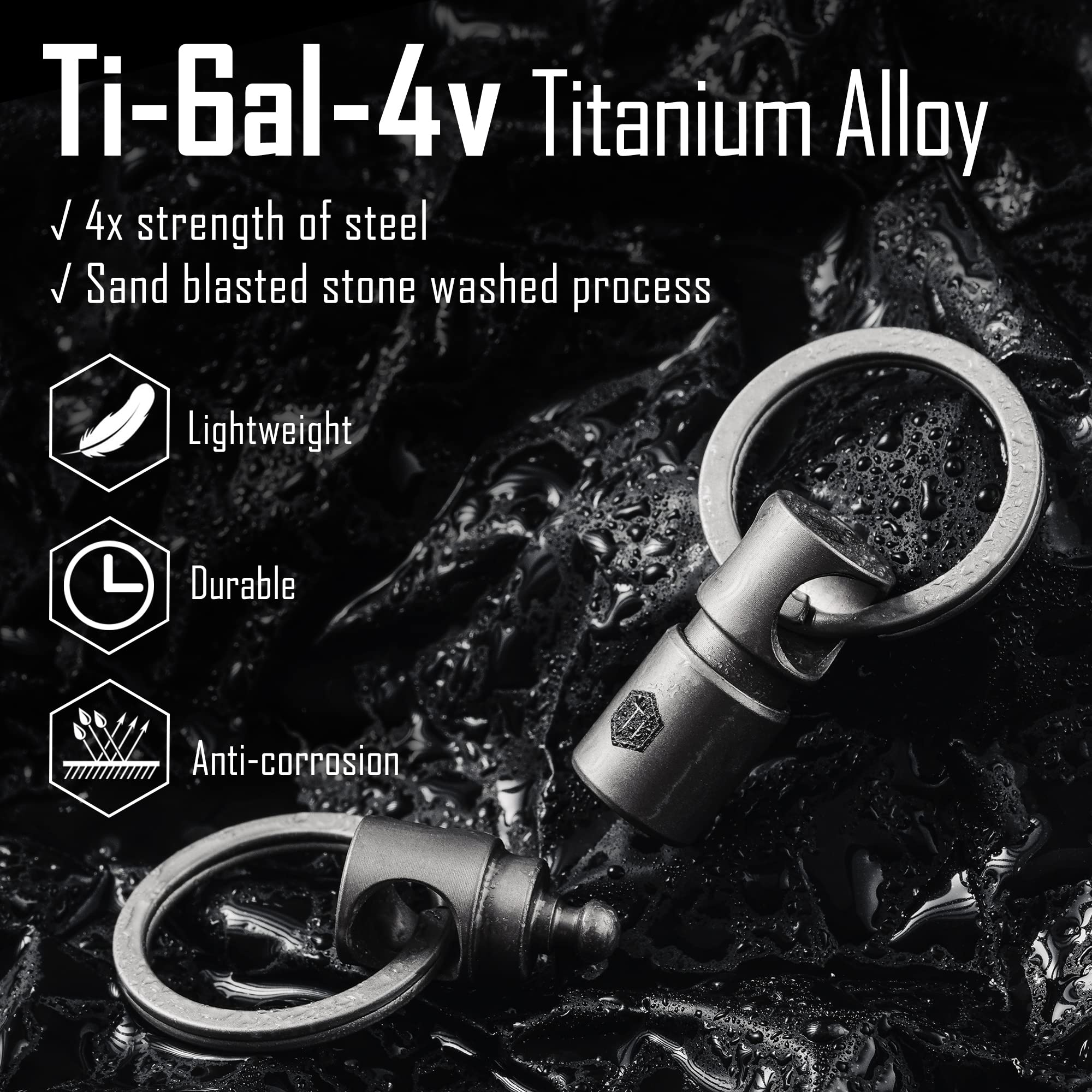 【チタン合金両端回転式コネクタ】軽くてわずか14gでも耐荷重が9Kg以上です。チタン合金で作られ、アレルギーを起こさなく、耐食性が強く、サビにくく、丈夫で長持ちします