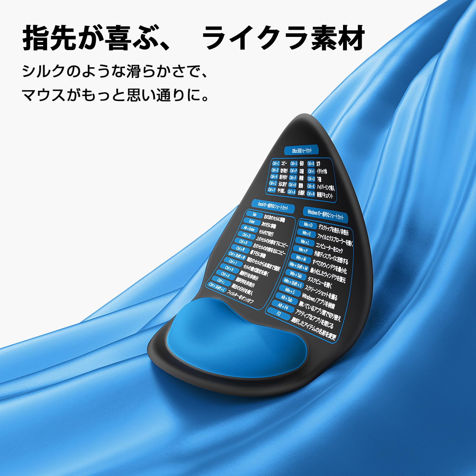 Senetem マウスパッド リストレスト付き|Office Excel Windows ショートカットキー印刷|PU滑り止め|低反発メモリーフォーム 手首サポート 人間工学 疲労軽減 パソコン用 マウス パッド ブラック ブルー