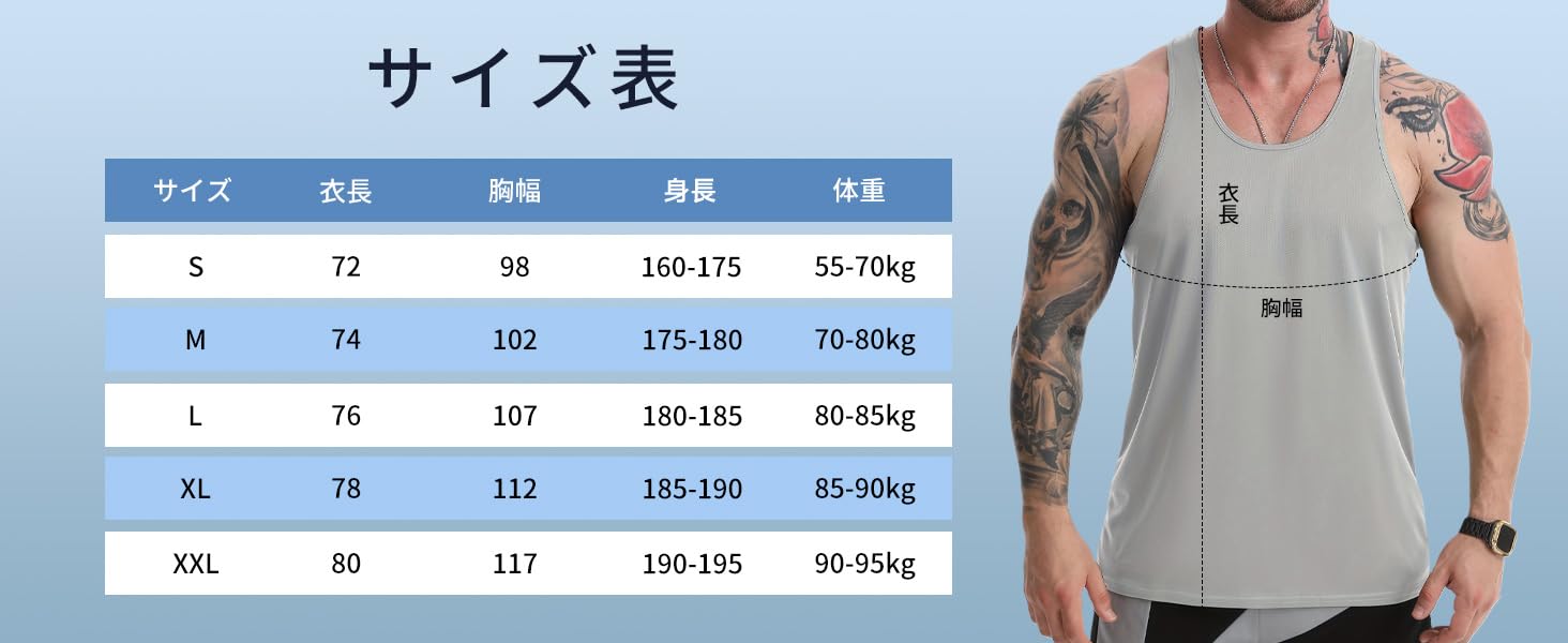 用途:ジム、ボディビル、筋トレ、ランニングなど、様々なスポーツシーンに最適なタンクトップ