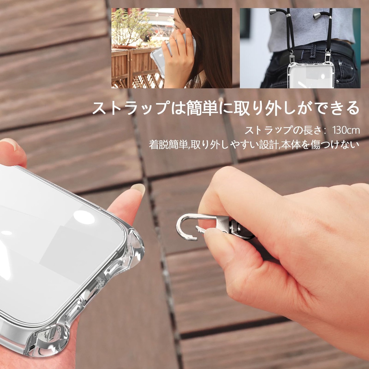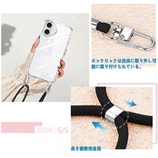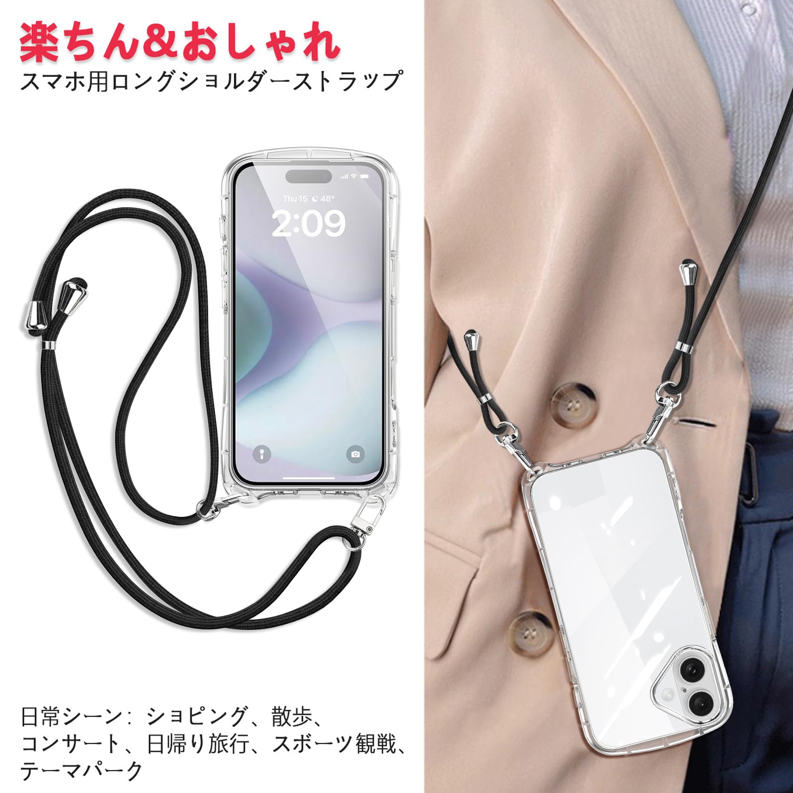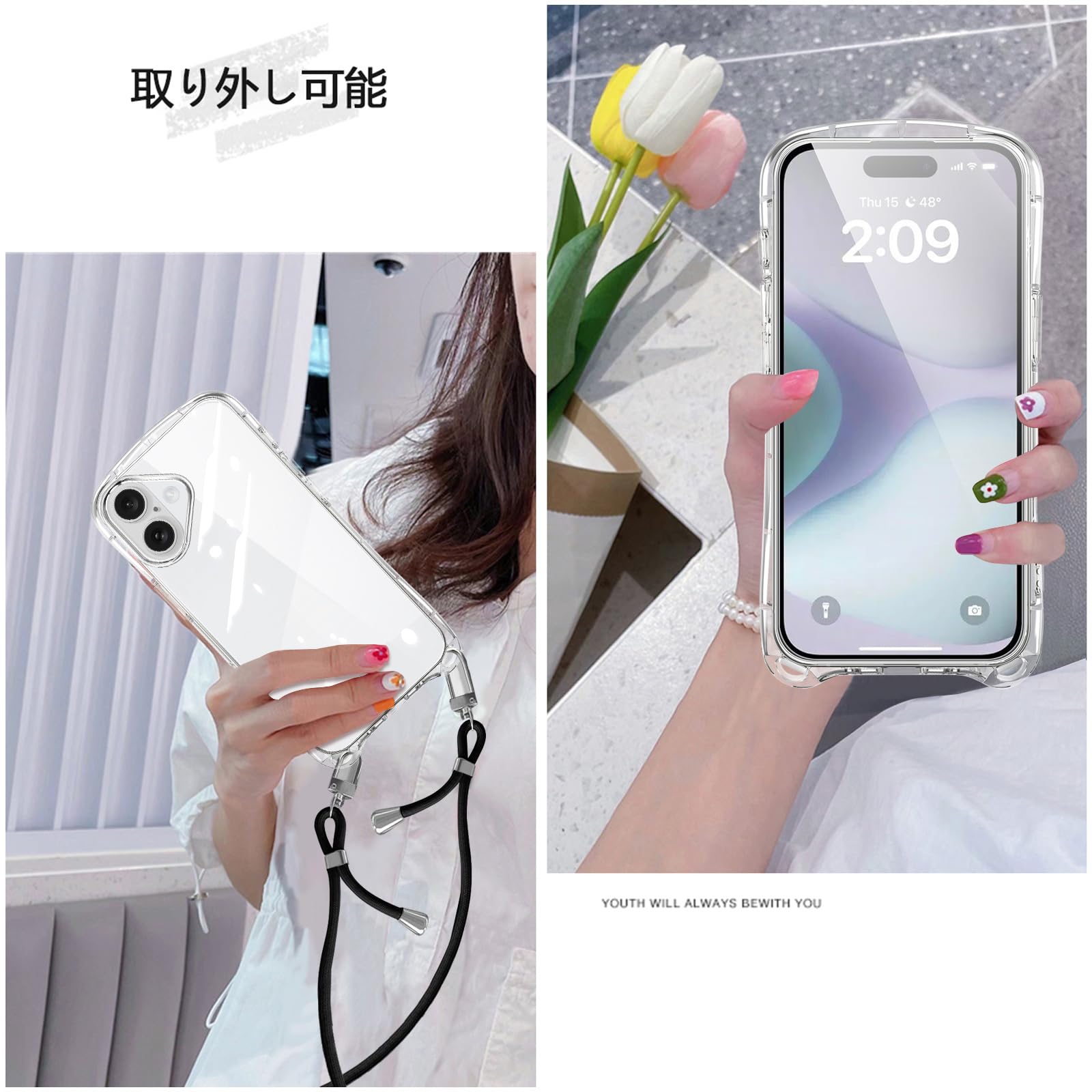 iPhone 16 用 ケース クリア ショルダー いphone16 スマホケース アイフォン16 カバー 全透明 耐衝撃 肩掛け 首掛け 可愛い かわいい 韓国 透明 TPU 長さ調整可能 取り外し可能(クリア)