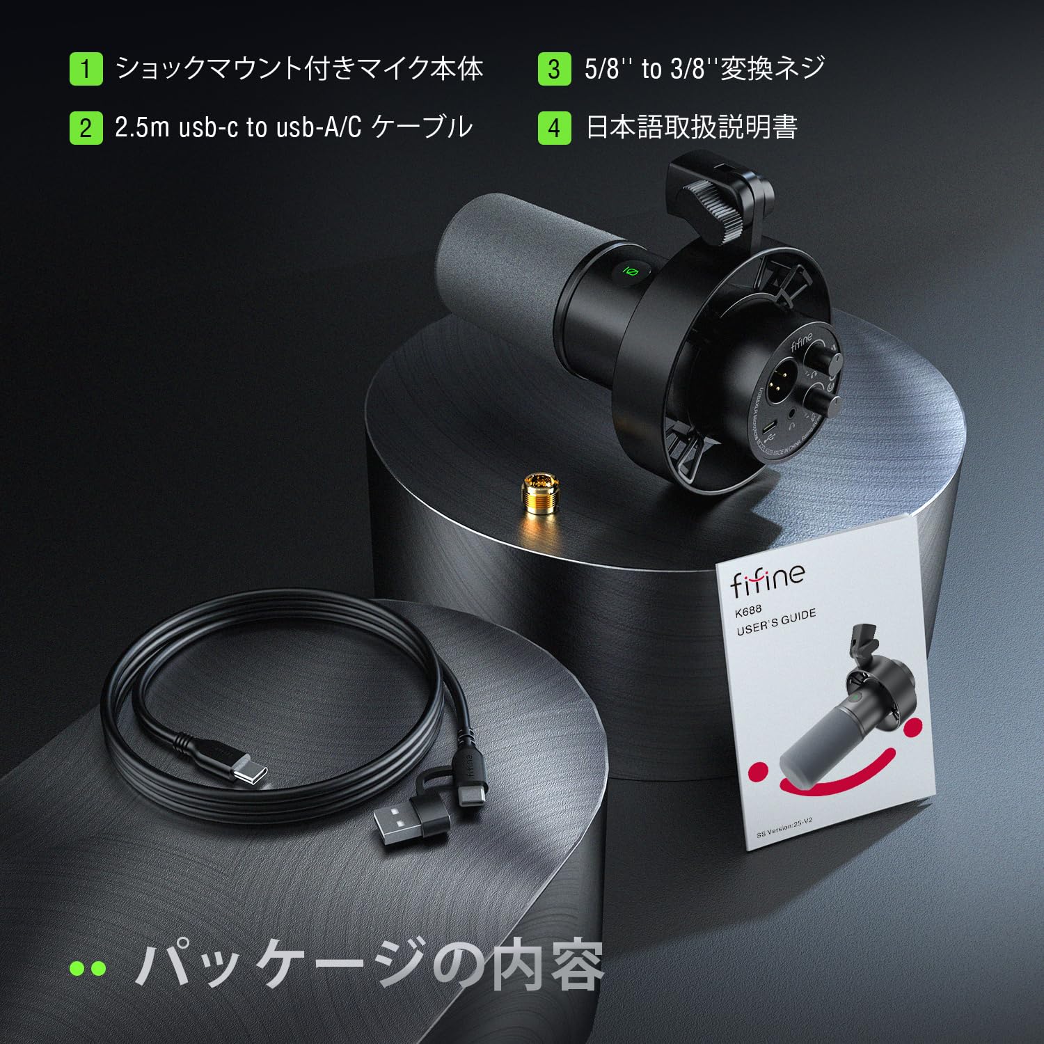 【新春セール】FIFINE ダイナミックポットキャストマイク USB/XLR接続可能 カーディオイドパターン単一指向性 USBケーブル付属 PC/プレステ/サウンドカード/ミキサー対応 イヤホン出力端子付き ワンタッチミュート グレイ風防付き ゲーム実況 ボイスチャット ライブ配信 ポッドキャスト テレワーク ナレーション録音に最適 AmpliTank K688 | nico3588